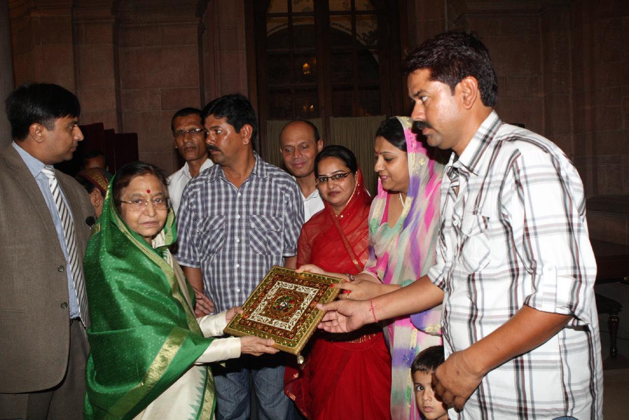| Caption: | The President of India, Smt Pratibha Devisingh Patil interacting with Shri Pravin Deshmukh and others at Rashtrapati Bhavan in New Delhi on July 10, 2012 |