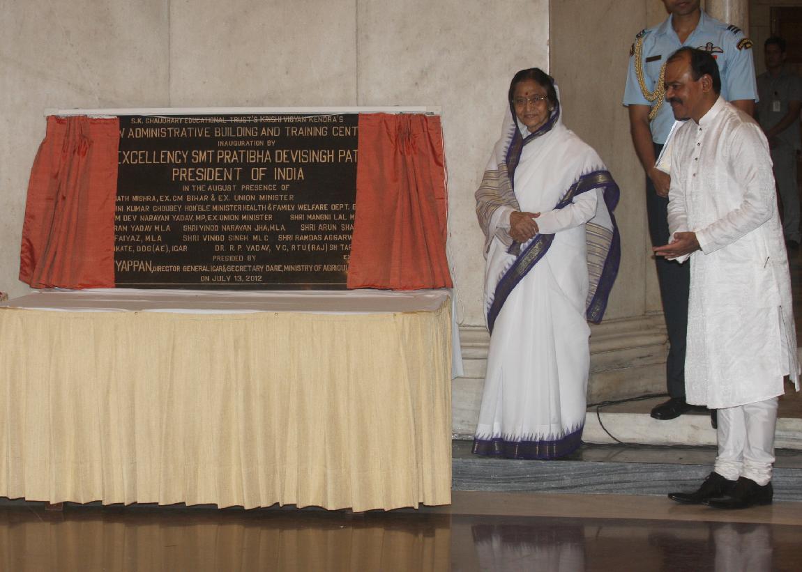 | Caption: | The President of India, Smt Pratibha Devisingh Patil unveiling the Symbol of Bhav Nath Vedmati Chaudhary College of Education at a Function at Rashtrapati Bhavan in New Delhi on July 13, 2012 |