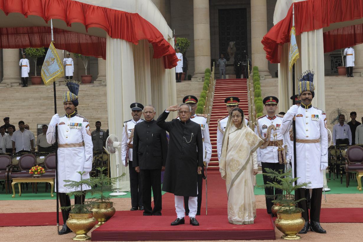 | Caption: | The President of India, Shri Pranab Mukherjee saluting after Elected at Forecourt of Rashtrapati Bhavan in New Delhi on July 25, 2012 |