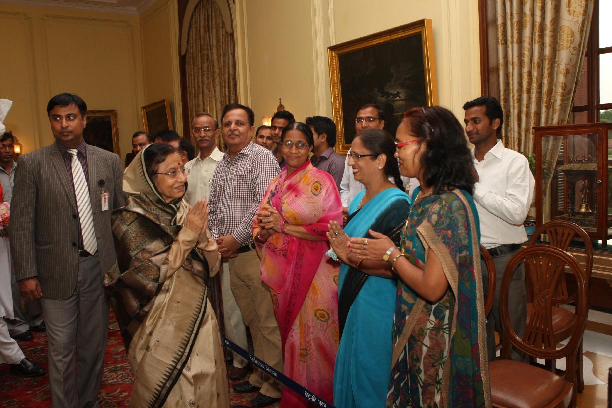 | Caption: | The President of India, Smt Pratibha Devisingh Patil interacting with the Officials of United Bank at President's Estate of Rashtrapati Bhavan in New Delhi on July 18, 2012 |