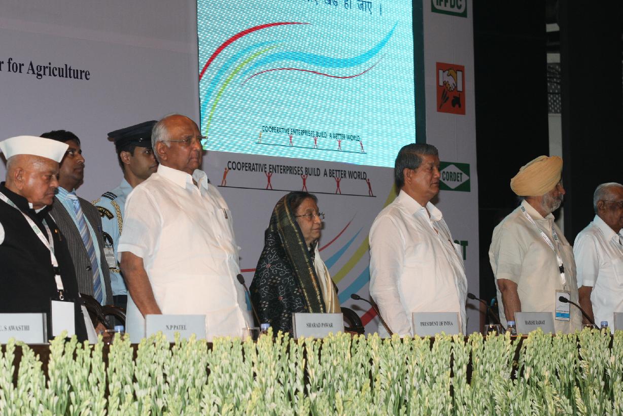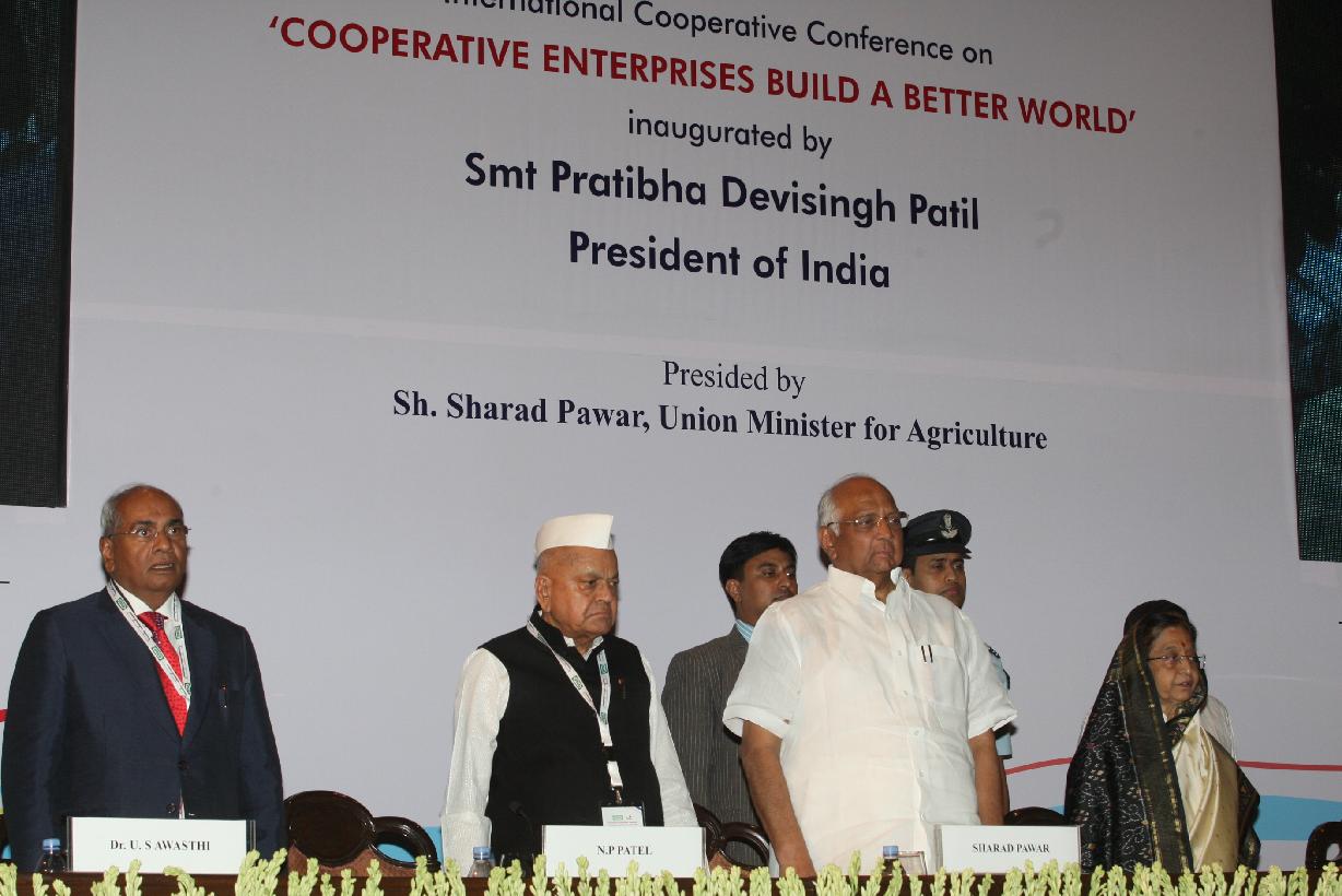 | Caption: | The President of India, Smt Pratibha Devisingh Patil being Felicitated by the Union Minister for Agriculture, Shri Sharad Pawar during the inauguration of the International Cooperative Conference on the Theme 'Cooperative Enterprises Build a Better World' in New Delhi on July 04, 2012 |