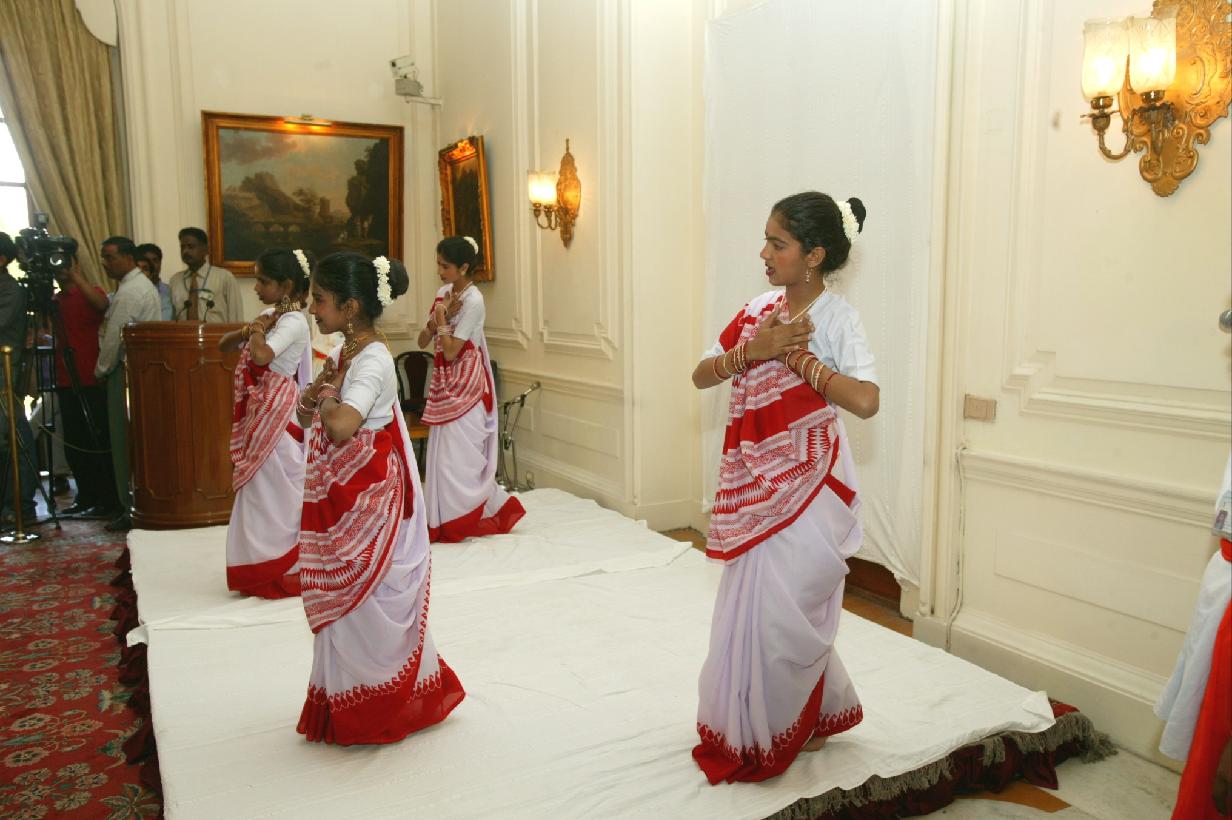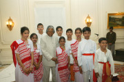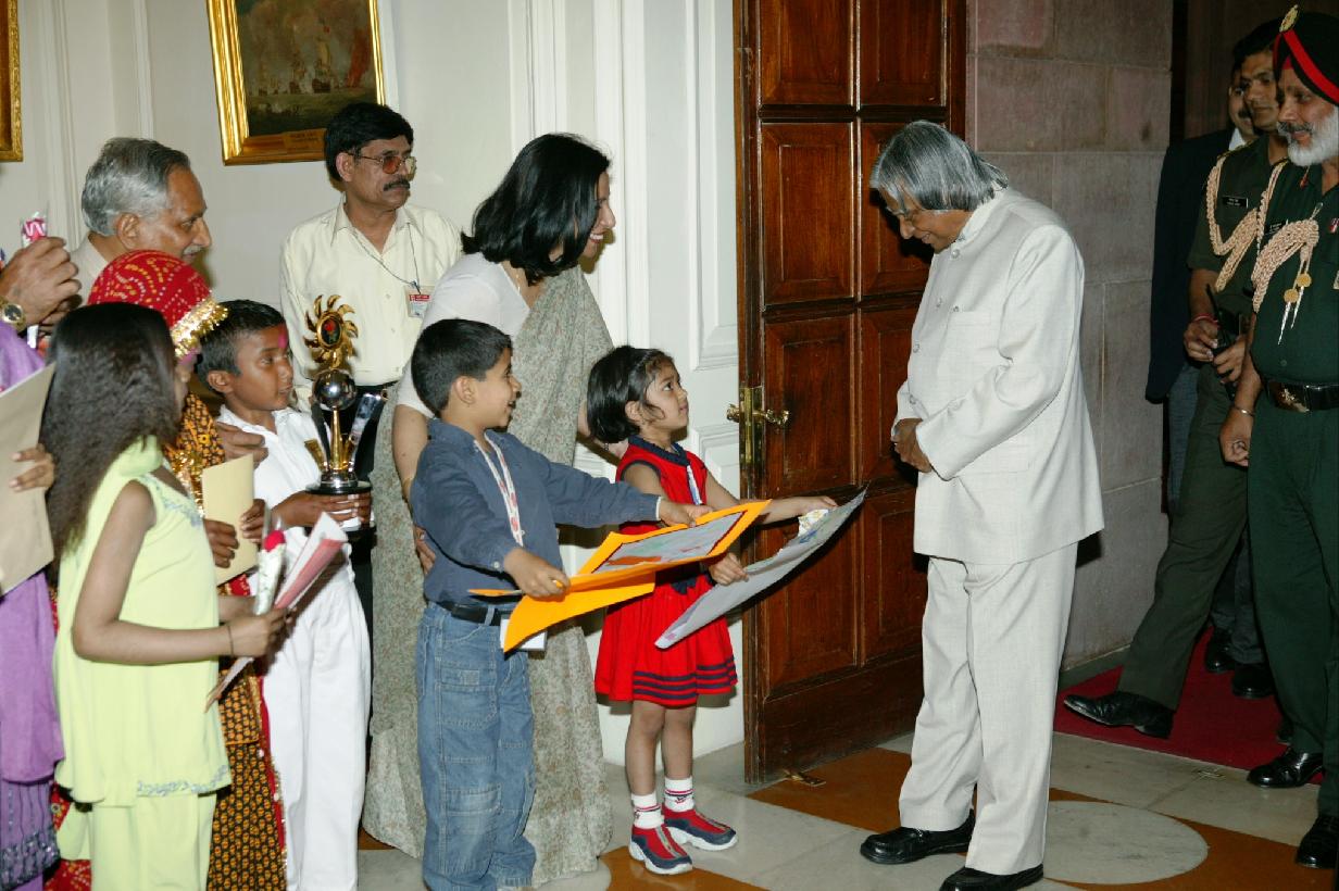 | Caption: | The President of India, Dr A P J Abdul Kalam receiving Holi Greetings from School Students at the Yellow Drawing Room of Rashtrapati Bhavan in New Delhi on March 07, 2004 |