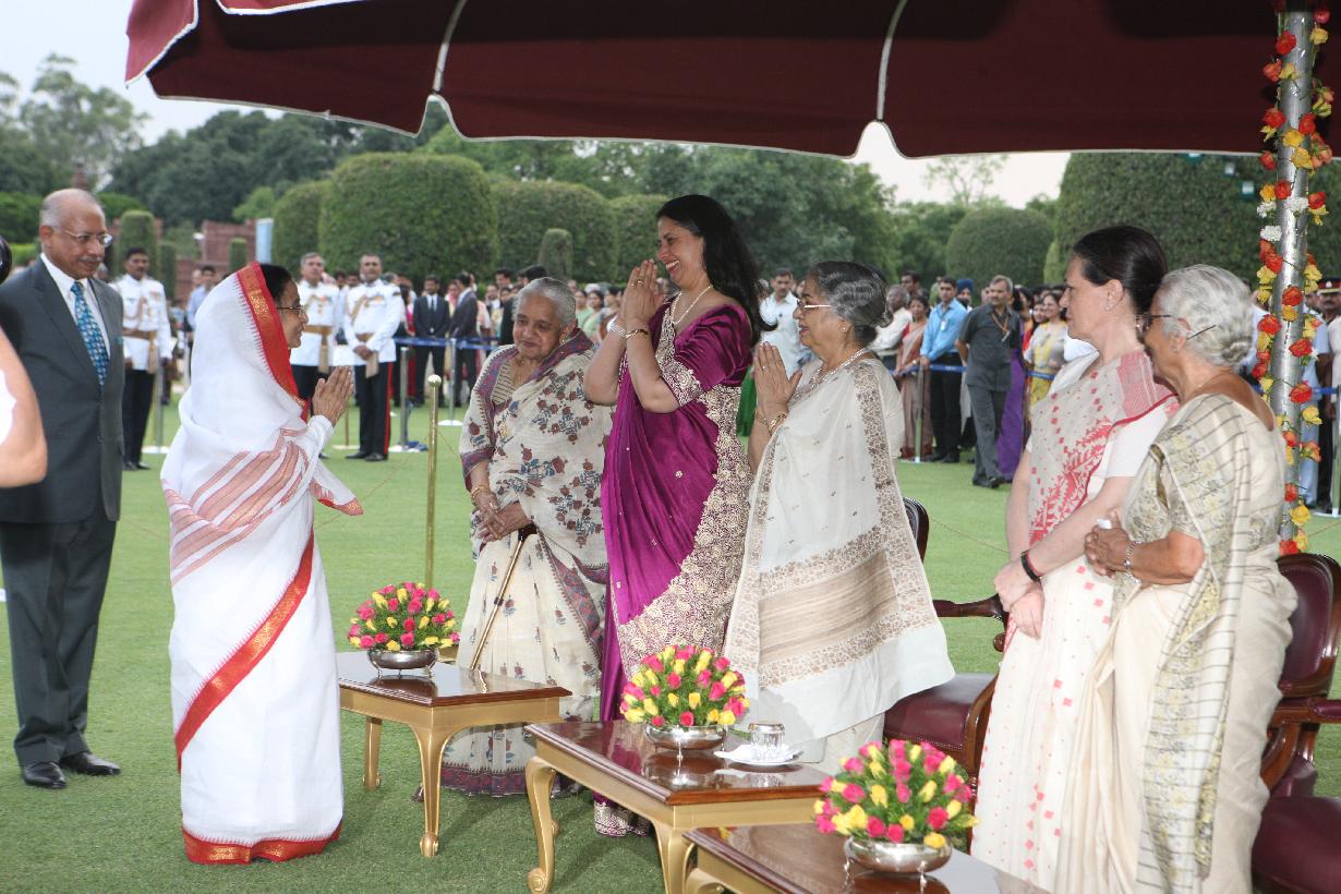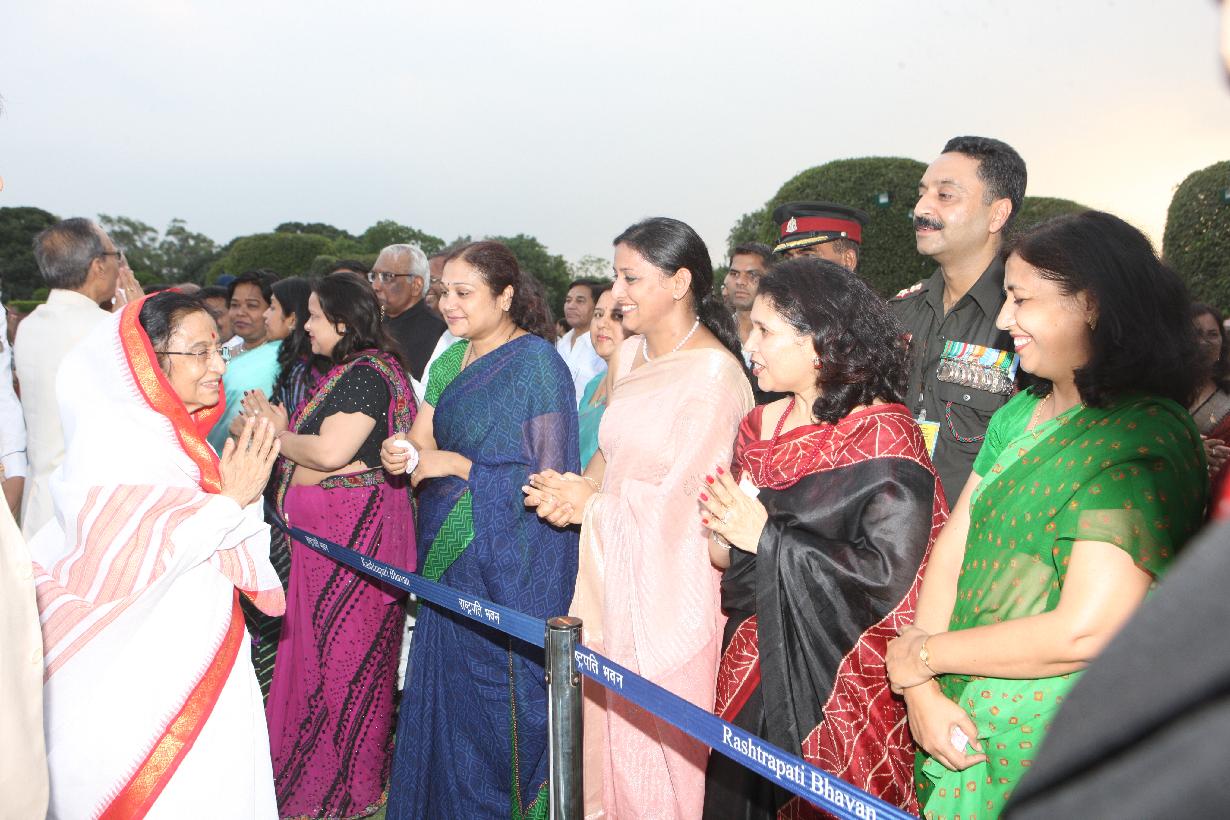 | Caption: | The President of India, Smt Pratibha Devisingh Patil interacting with the visitors during At Home Function at Rashtrapati Bhavan in New Delhi on July 22, 2012 |