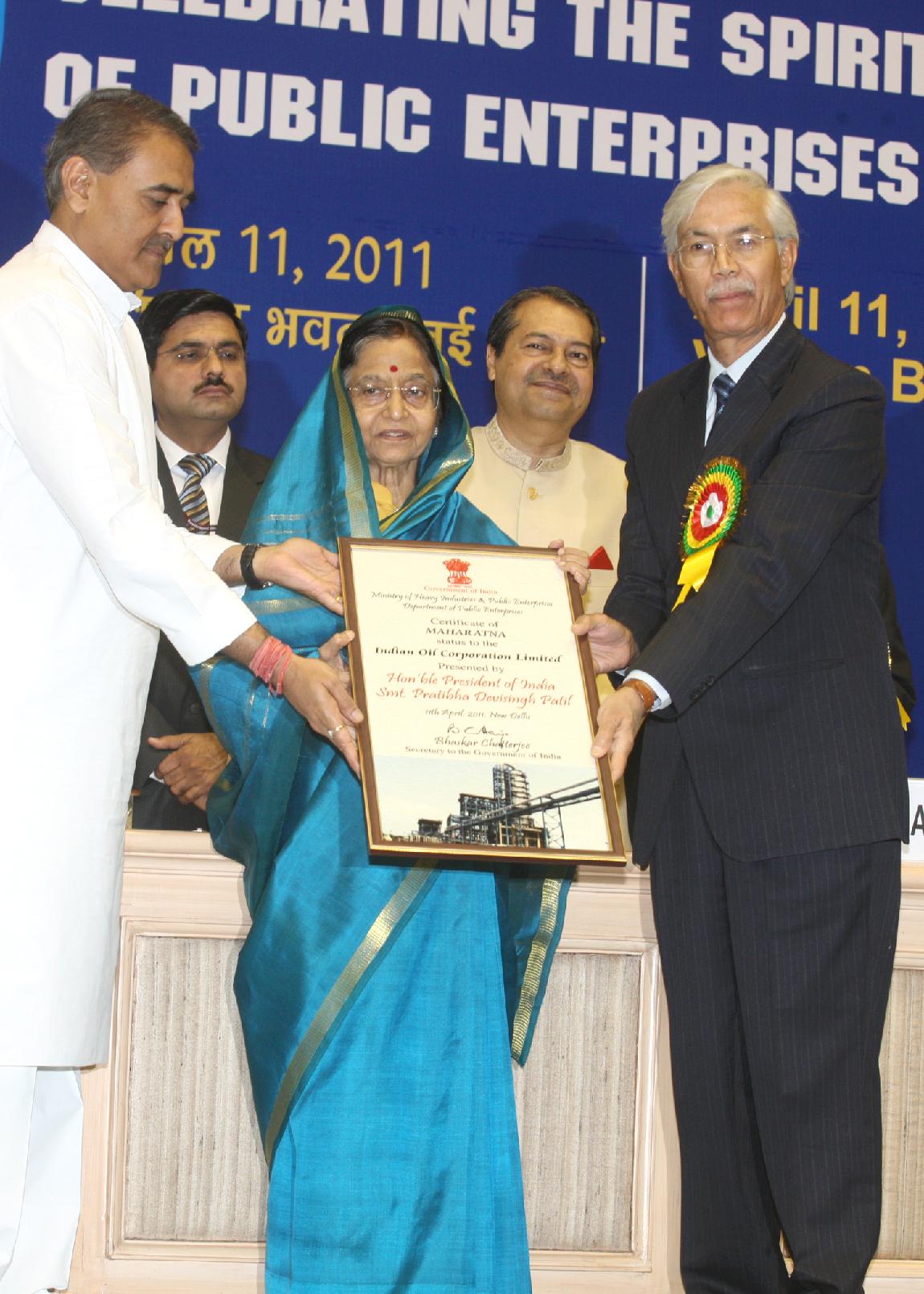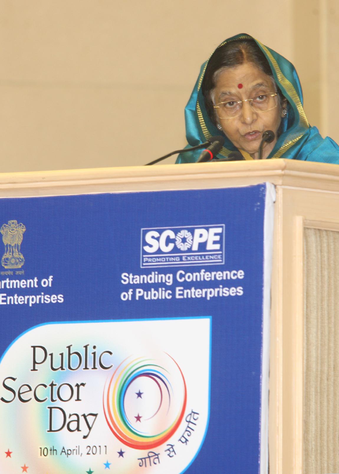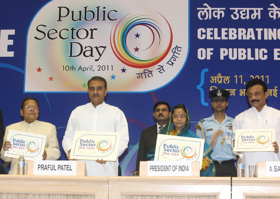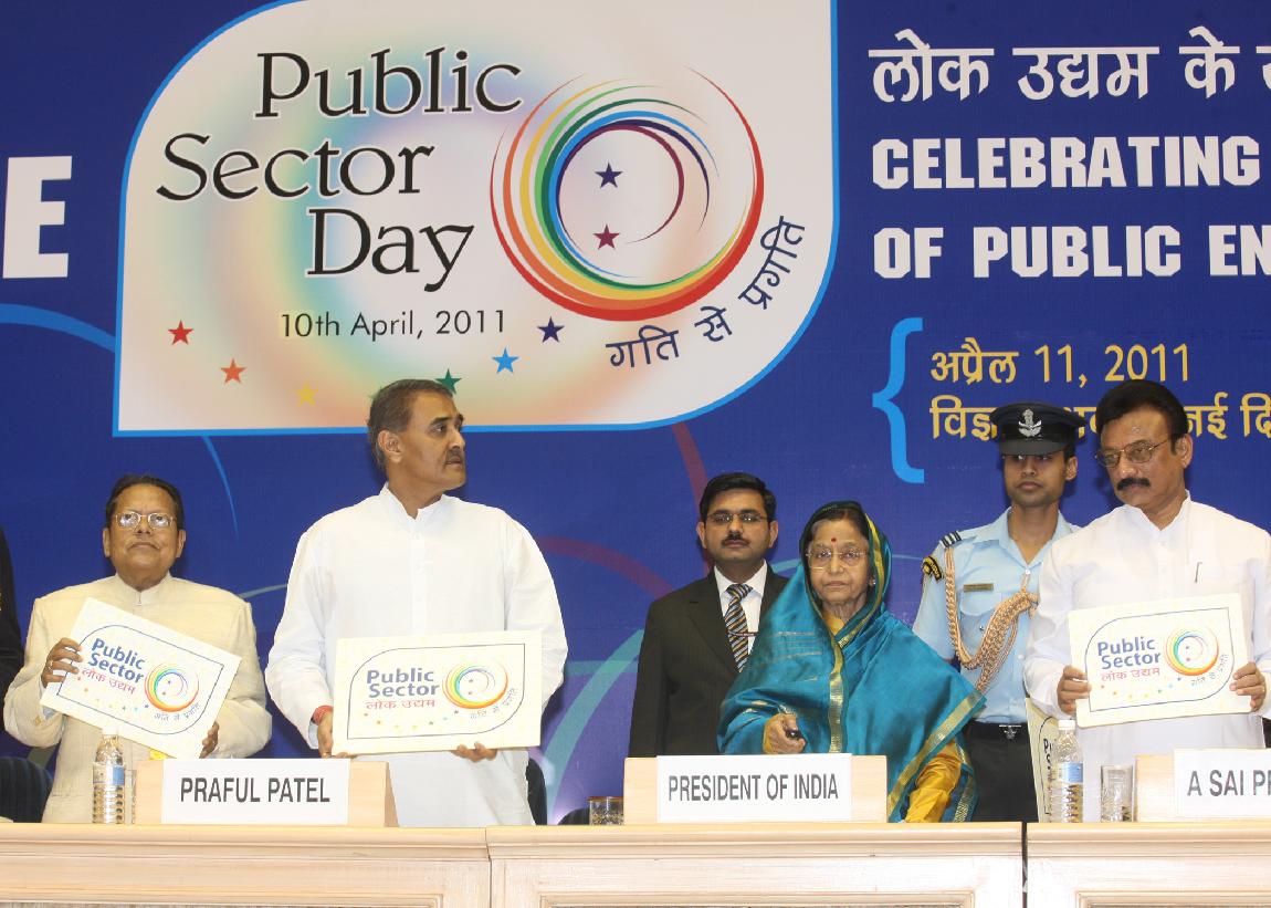 | Caption: | The President of India, Smt Pratibha Devisingh Patil presenting the Awards to the Central Public Sector Enterprises at the Public Sector Day function at Vigyan Bhavan in New Delhi on April 11, 2011 |