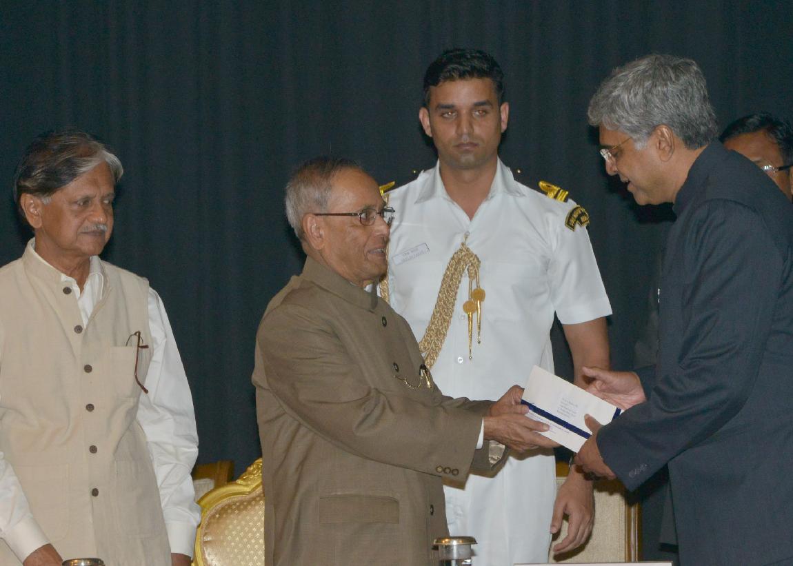 | Caption: | The President of India, Shri Pranab Mukherjee presenting the Lal Bahadur Shastri National Award for Excellence in Public Administration, Academics & Management to Dr R A Badwe at Rashtrapati Bhavan Auditorium in New Delhi on Oct 01, 2013 |