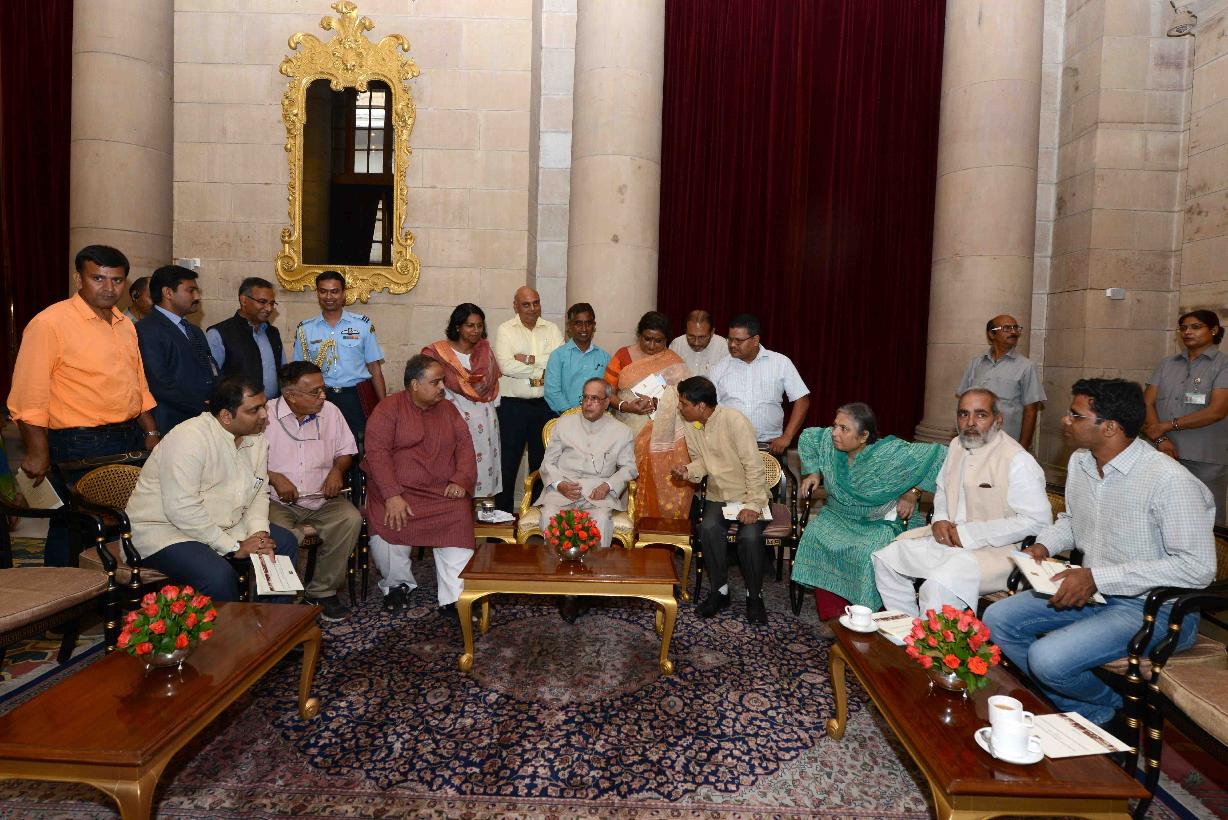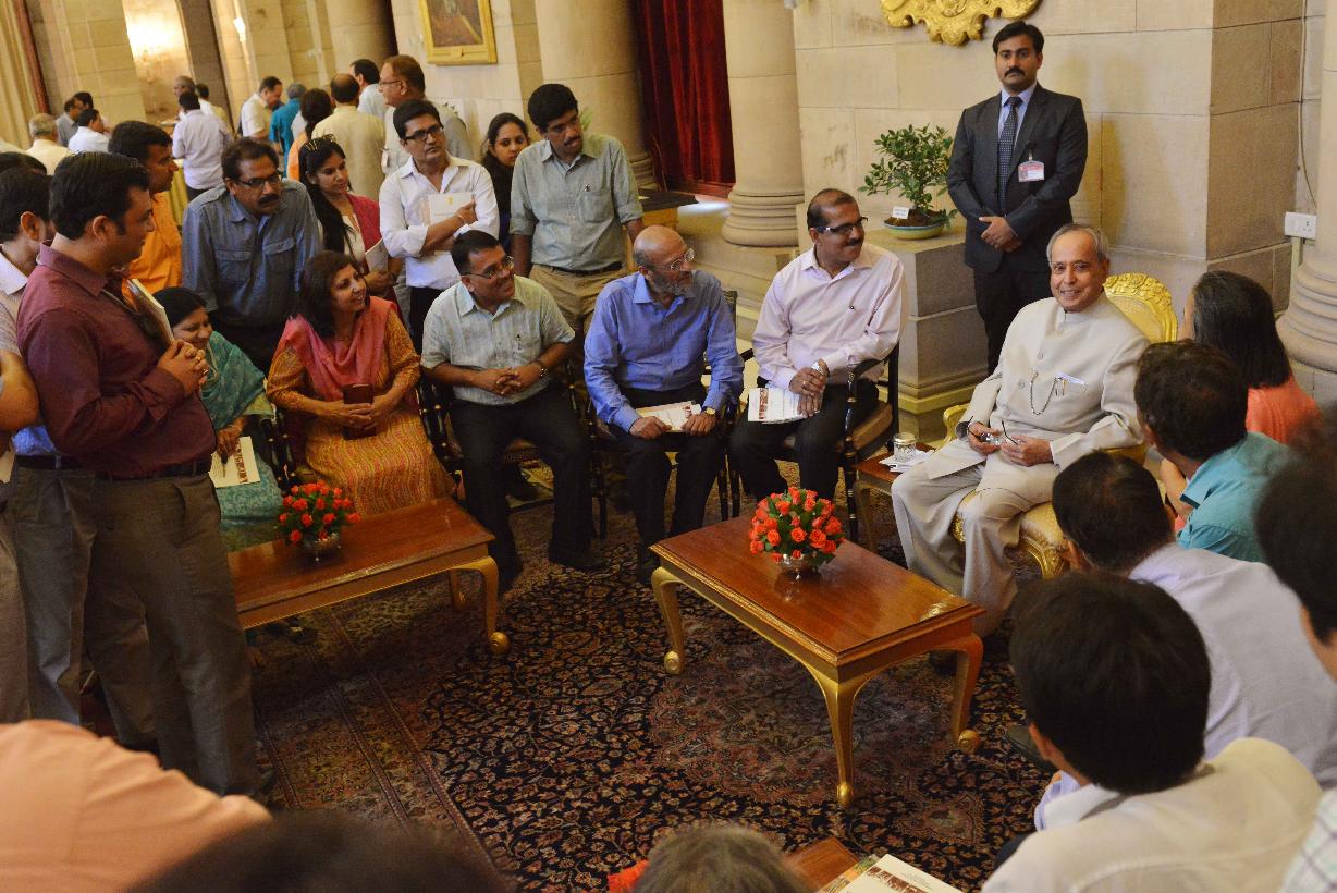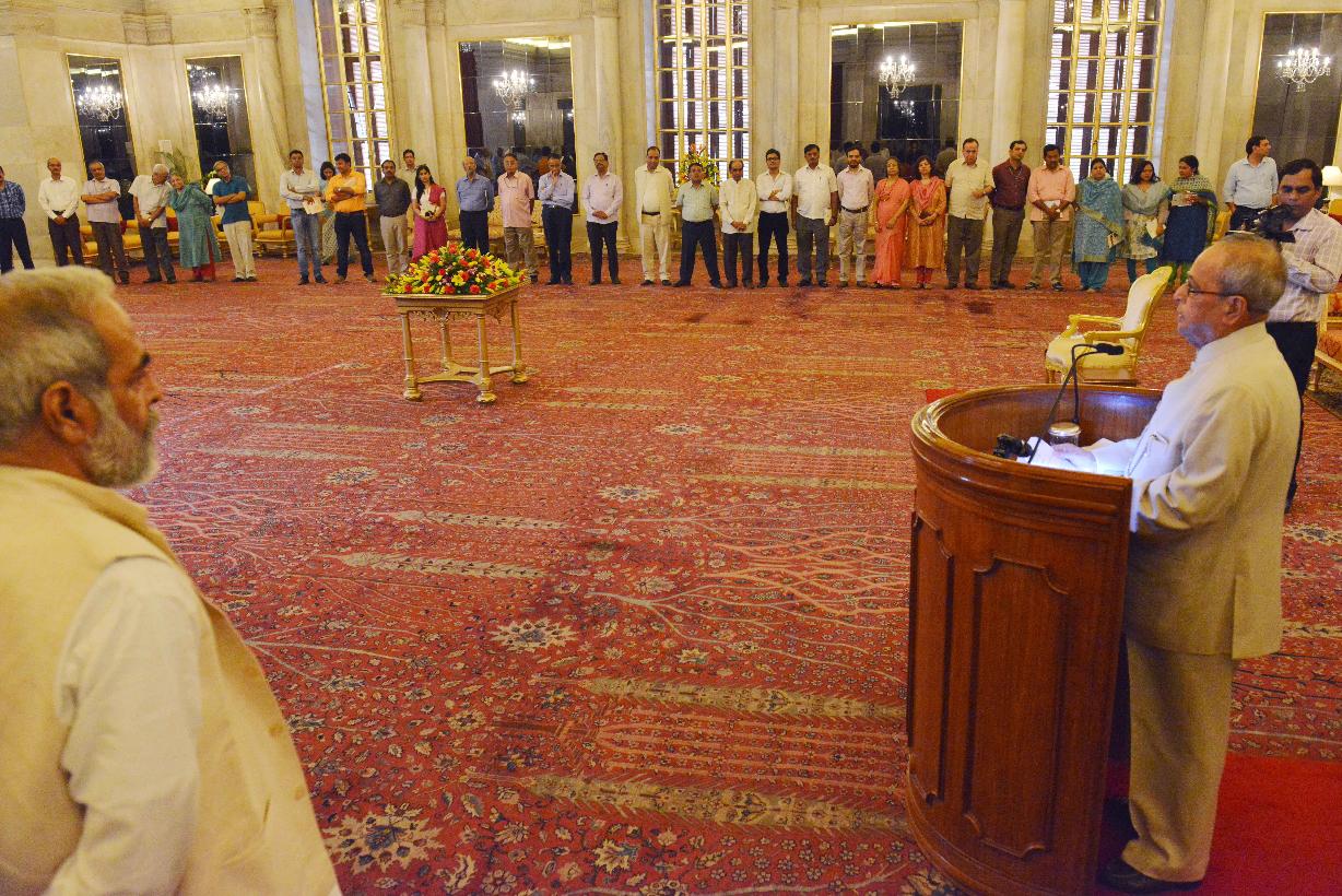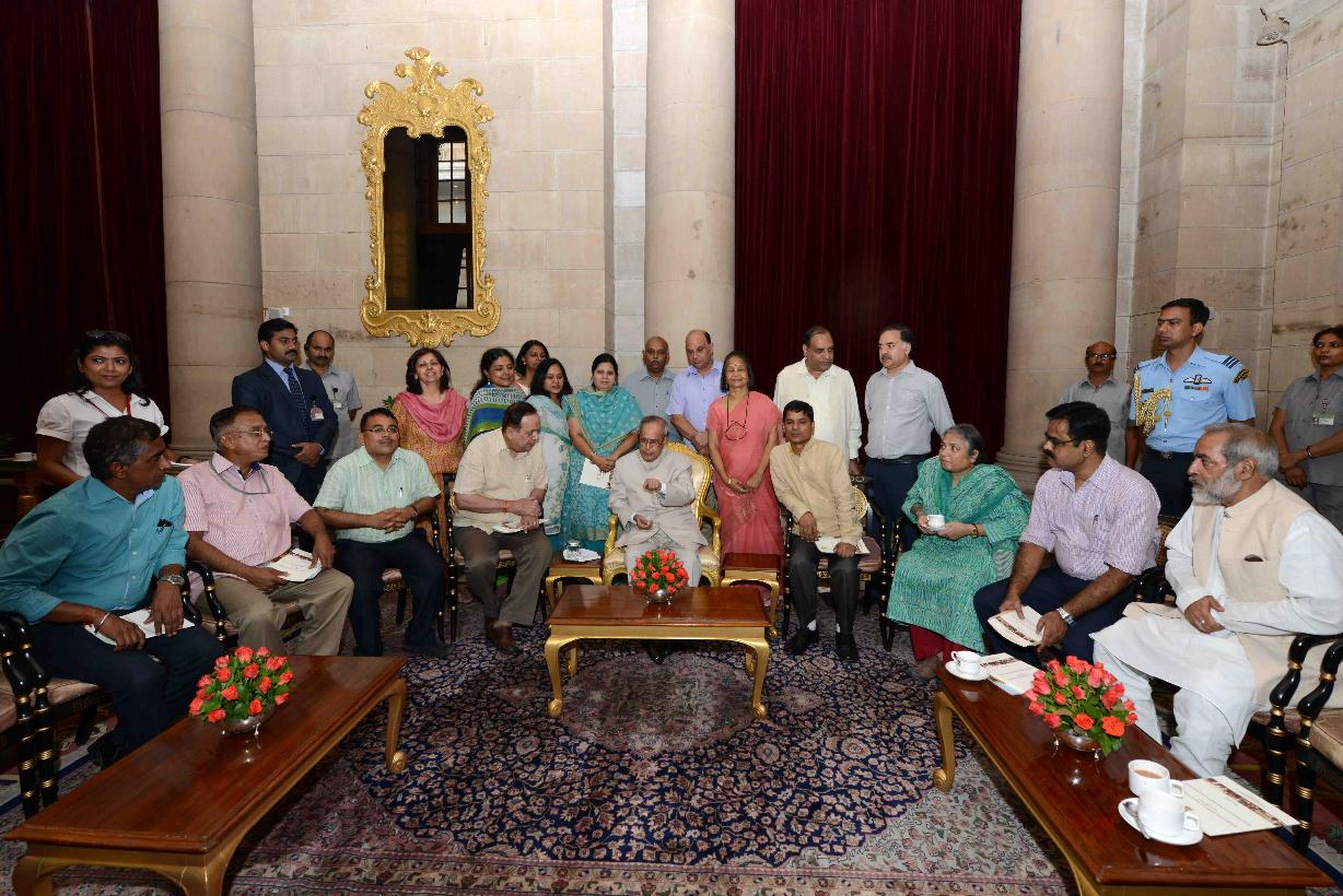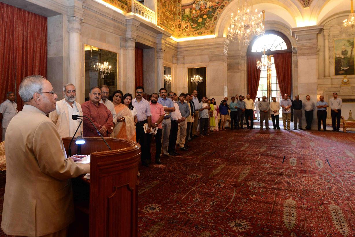 | Caption: | The President of India, Shri Pranab Mukherjee interacting with Media Personnel, at Rashtrapati Bhavan, in New Delhi on August 03, 2015. |