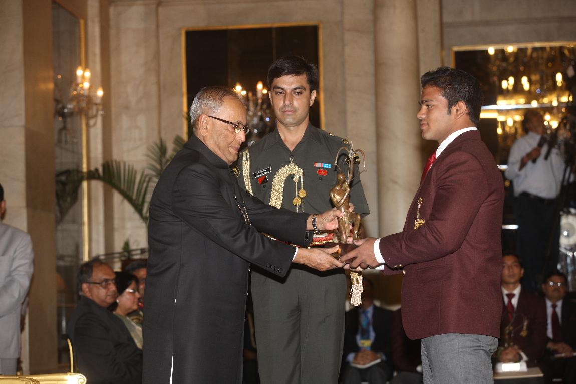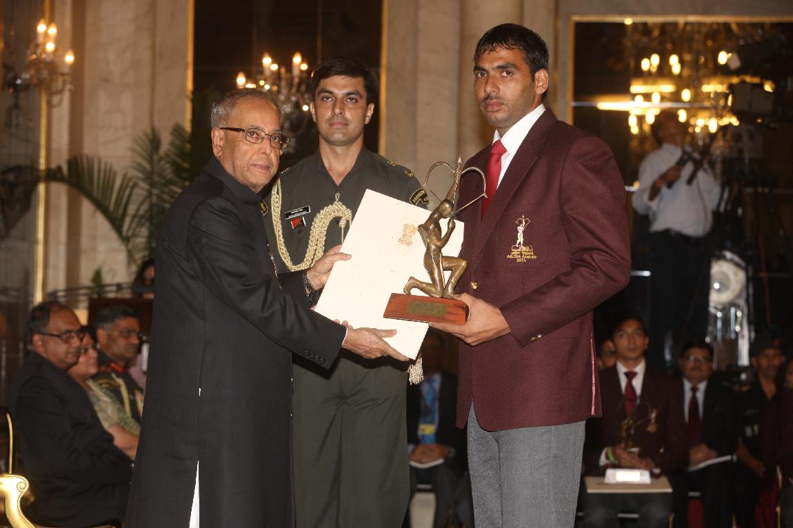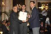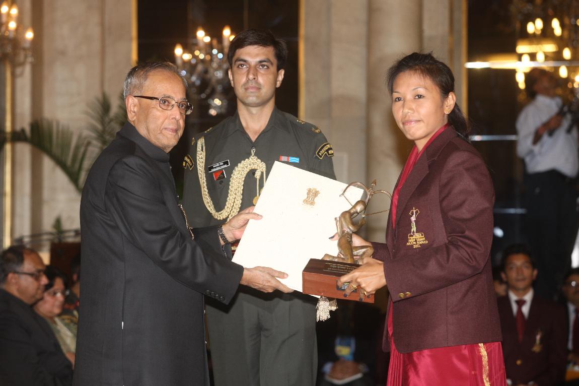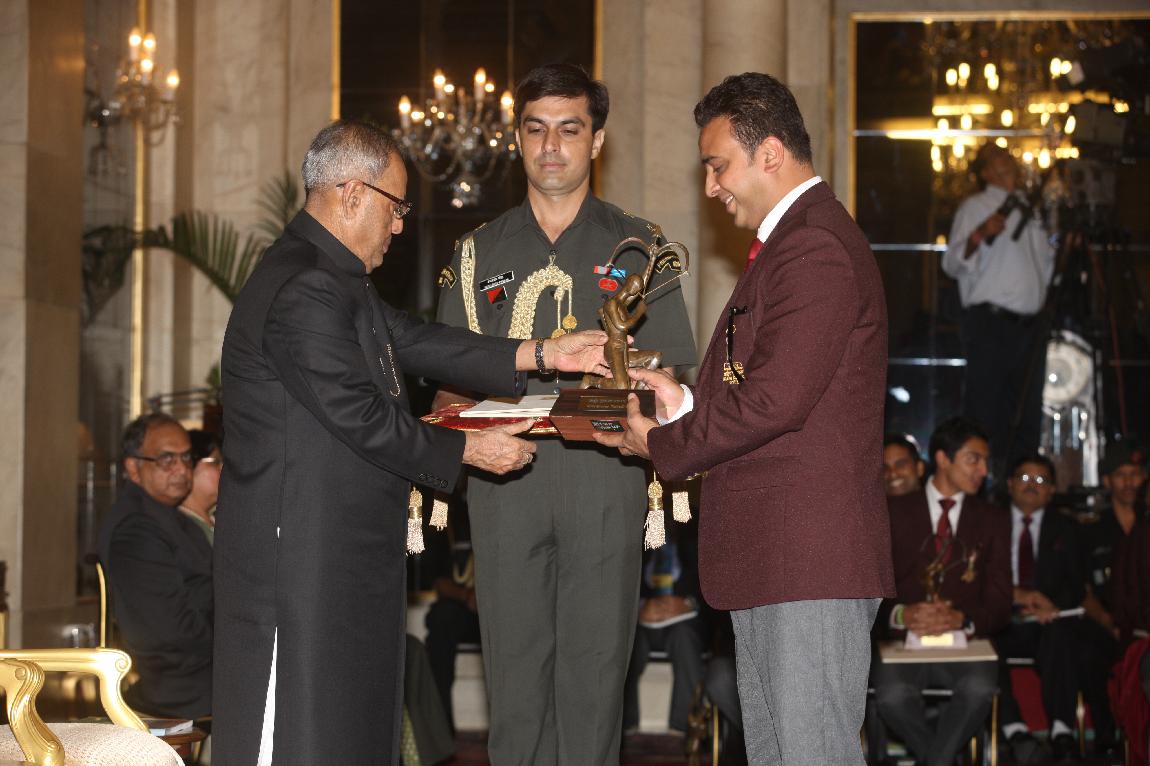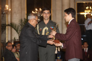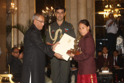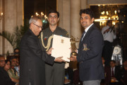 | Caption: | The President of India, Shri Pranab Mukherjee Presenting The Rajiv Gandhi Khel Ratna Award & Arjun Award on August 29, 2012 |