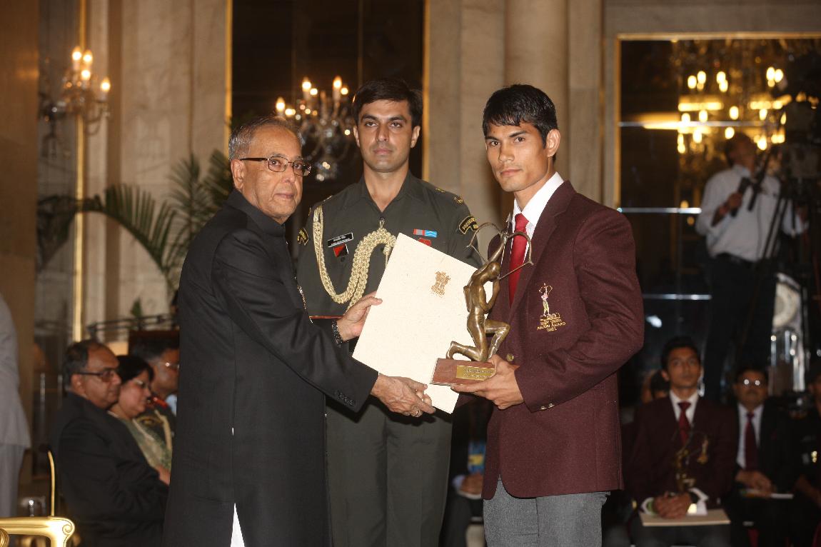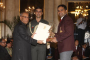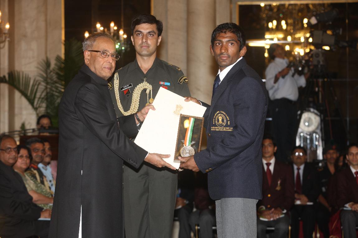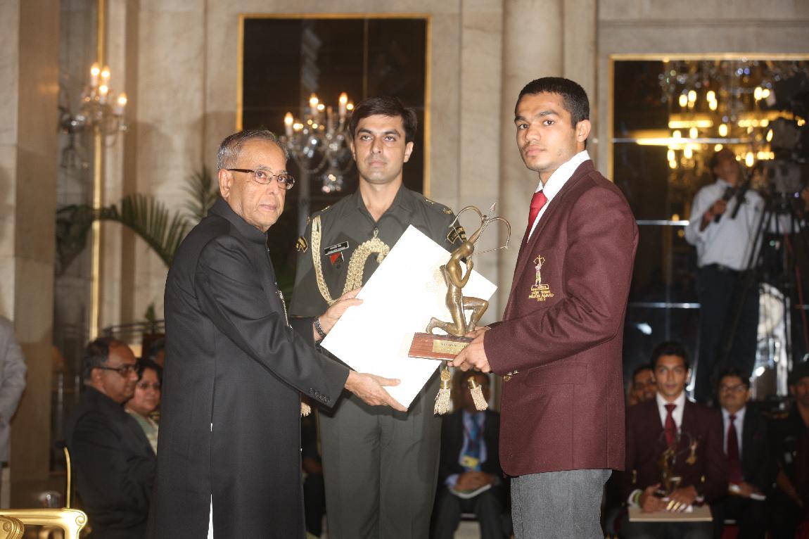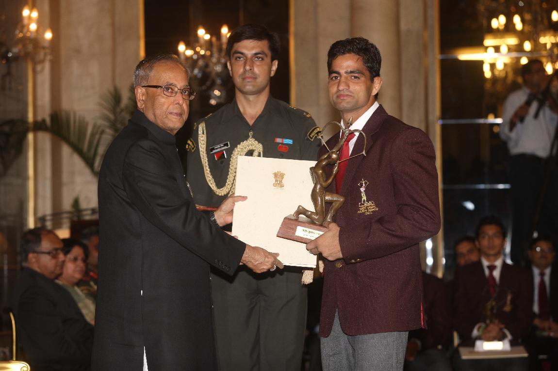 | Caption: | The President of India, Shri Pranab Mukherjee Presenting The Rajiv Gandhi Khel Ratna Award & Arjun Award on August 29, 2012 |