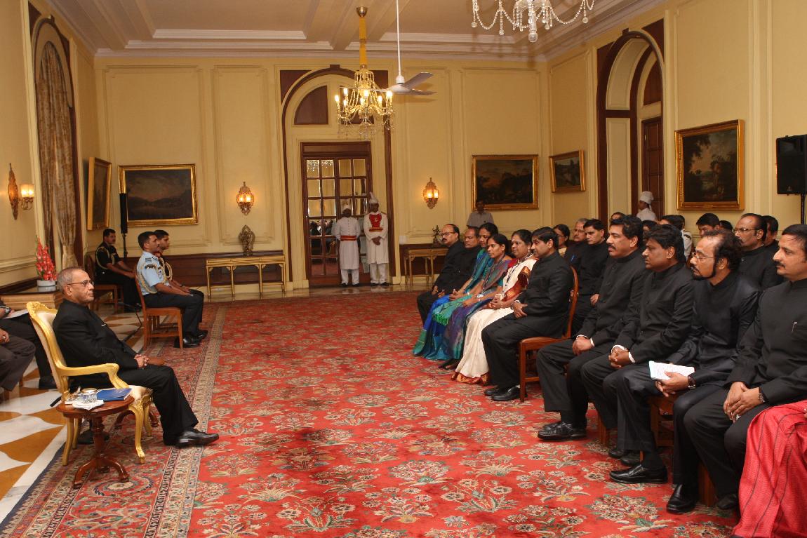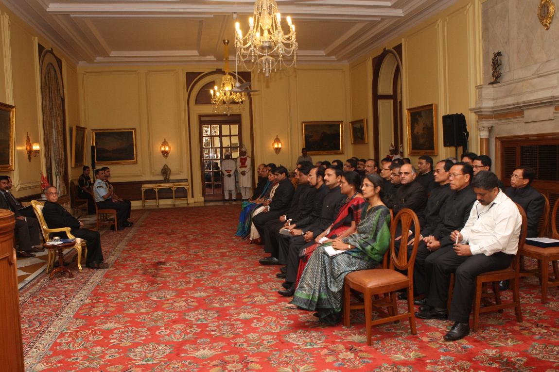 | Caption: | The President of India, Shri Pranab Mukherjee with Civil Service Officers Promoted to IAS from Lal Bahadur Shastri National Academy of Administration on August 30, 2012 |