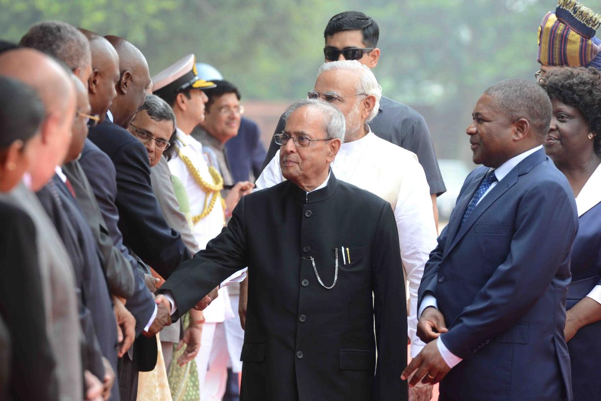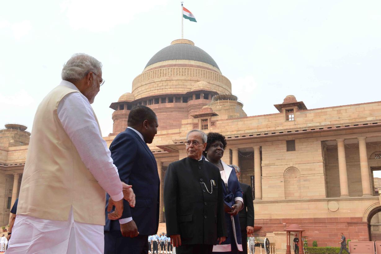 | Caption: | The President of India, Shri Pranab Mukherjee at the Ceremonial Reception of the President of the Republic of Mozambique, H.E. Mr. Filipe Jacinto Nyusi, at Rashtrapati Bhavan, in New Delhi on August 05, 2015. |