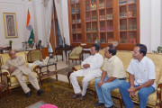 | Caption: | The President of India, Shri Pranab Mukherjee meeting with Shri Rabi Chattaraj and others from Mirati, at Rashtrapati Bhavan, in New Delhi on August 17, 2015. |