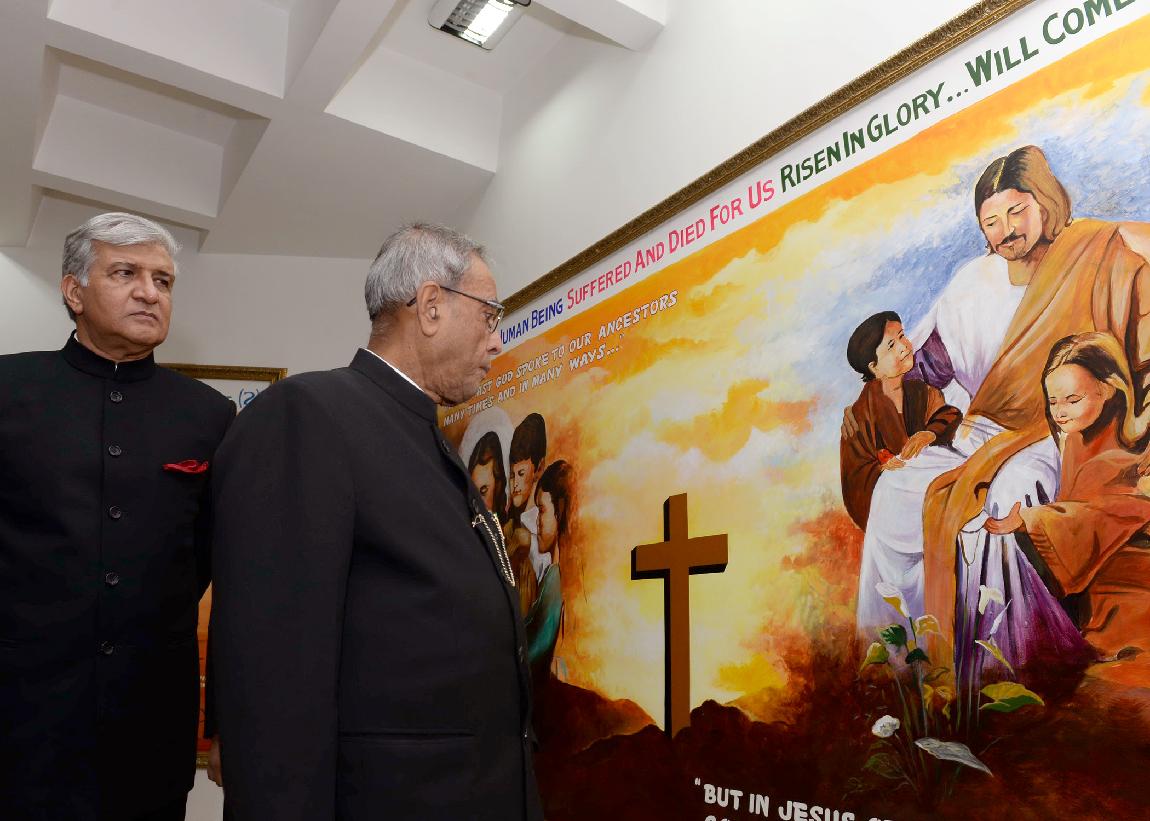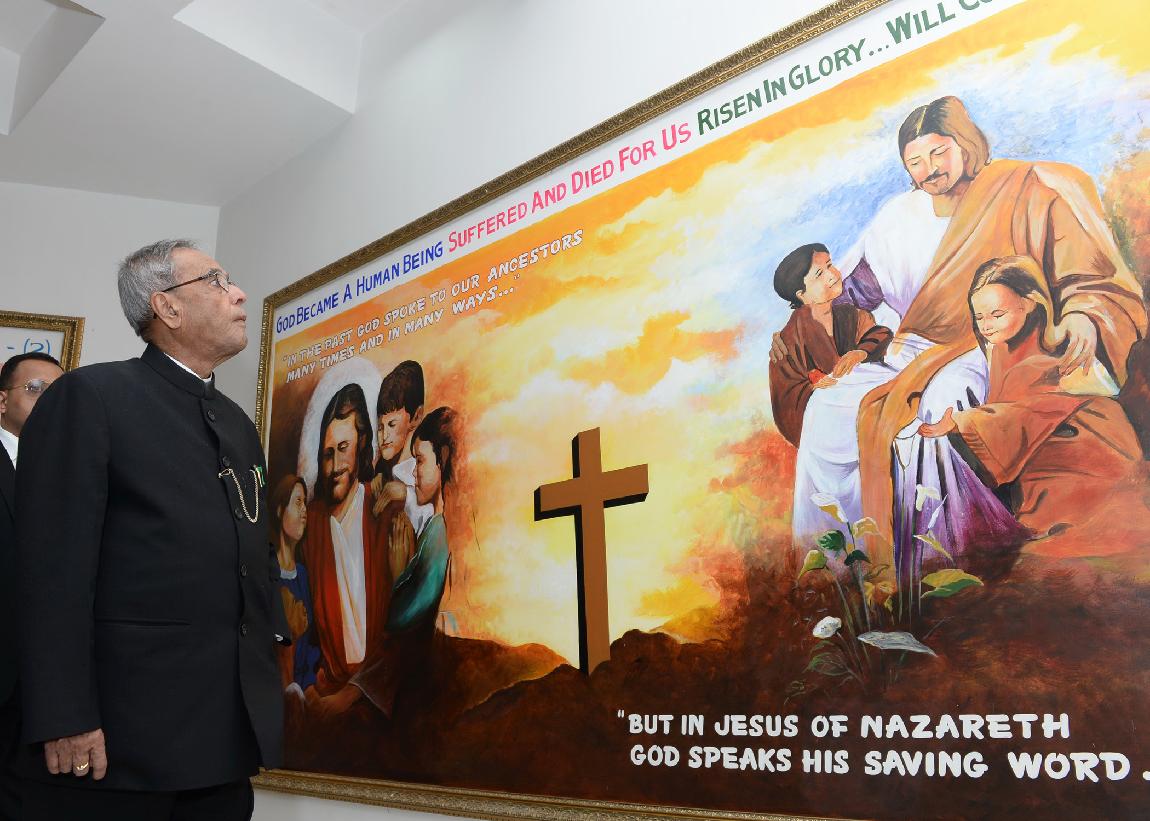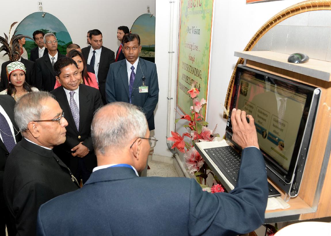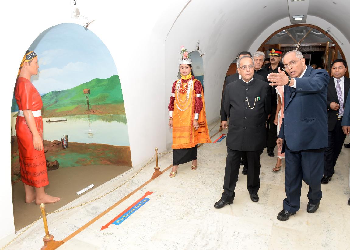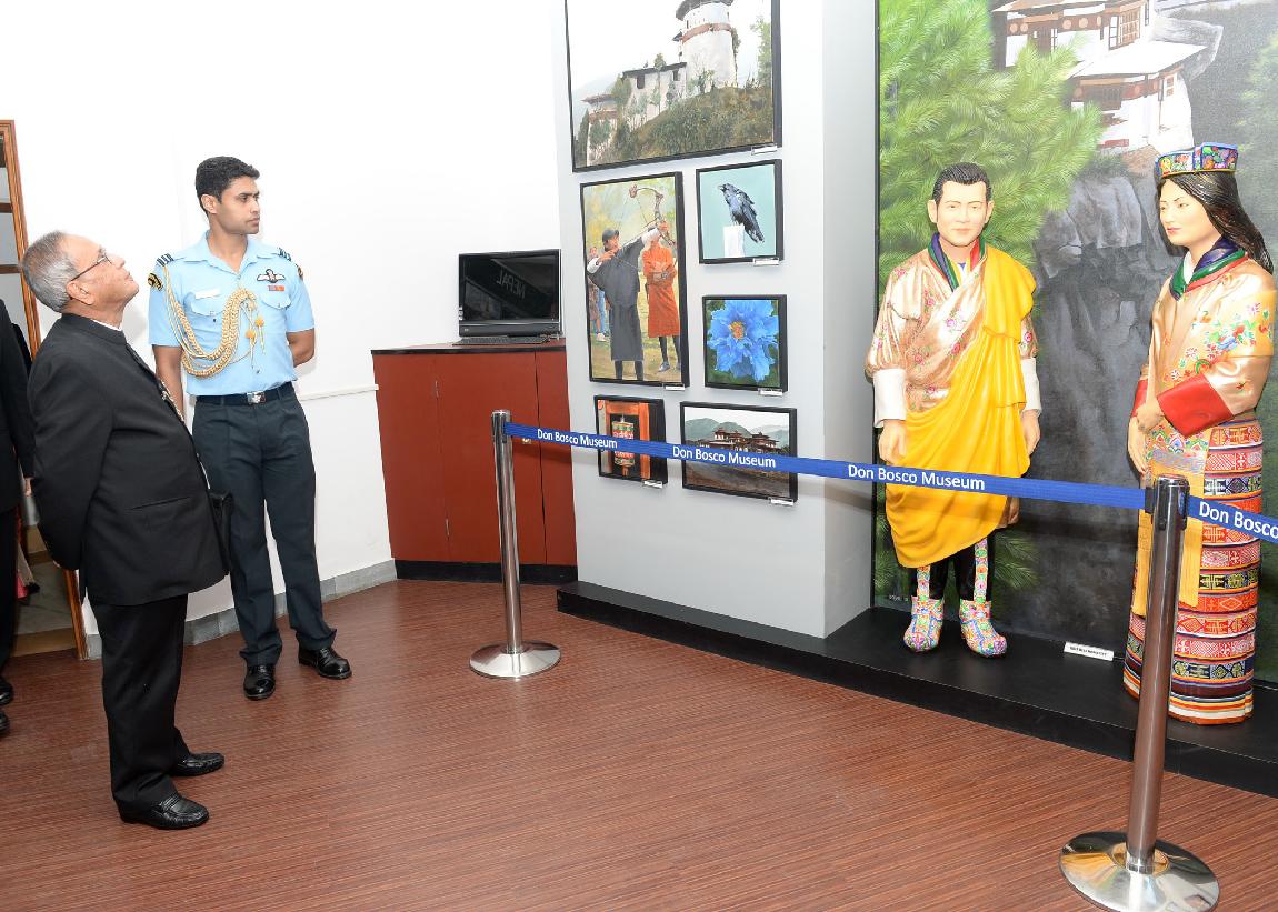 | Caption: | The President of India, Shri Pranab Mukherjee visiting Don Bosco Museum of Indigenous Cultures at Mawlai in Shillong, Meghalaya on Oct 21, 2013 |