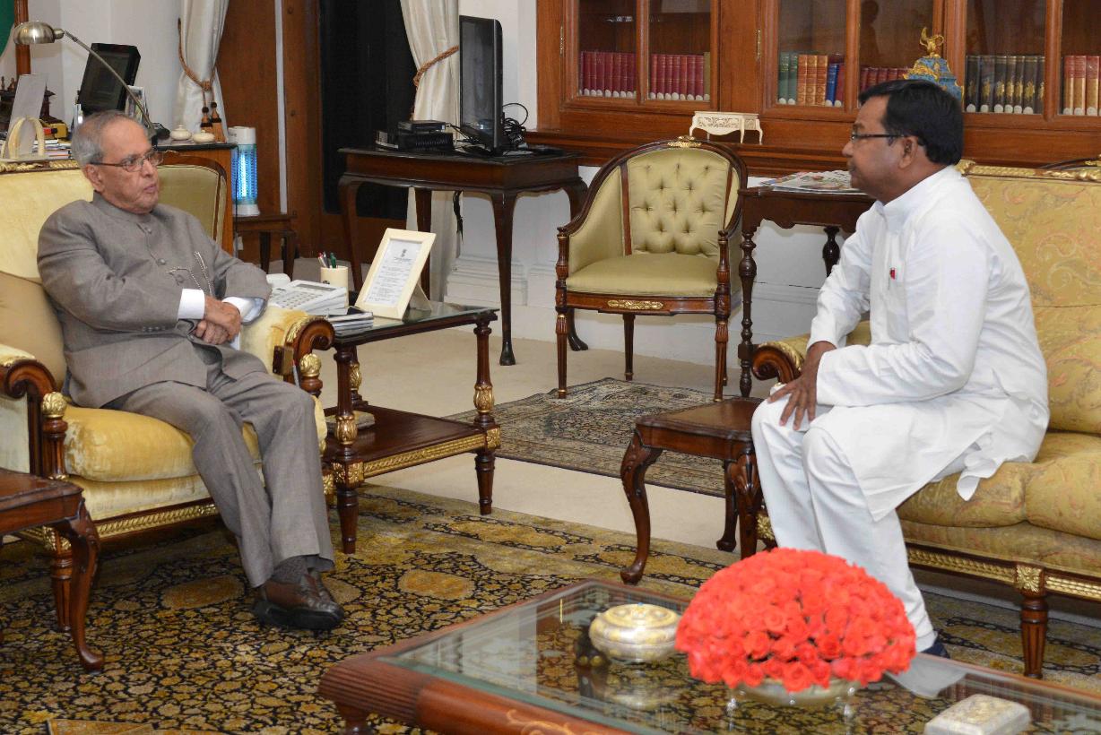| Caption: | The President of India, Shri Pranab Mukherjee meeting with Dr. Bhakta Charan Das, former Union Minister, at Rashtrapati Bhavan, in New Delhi on August 24, 2015. |