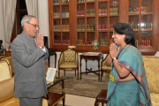 | Caption: | The President of India, Shri Pranab Mukherjee meeting with the Ambassador-designate of India to Romania, Ms. Riva Ganguly Das, at Rashtrapati Bhavan, in New Delhi on August 25, 2015. |