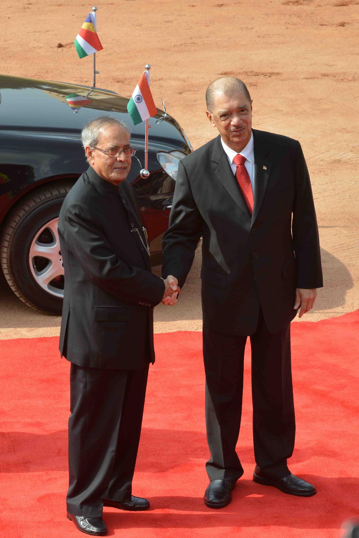 | Caption: | The President of India, Shri Pranab Mukherjee receiving the President of the Republic of Seychelles, H.E. Mr. James Alix Michel during his Ceremonial Reception, at Rashtrapati Bhavan, in New Delhi on August 26, 2015. |
