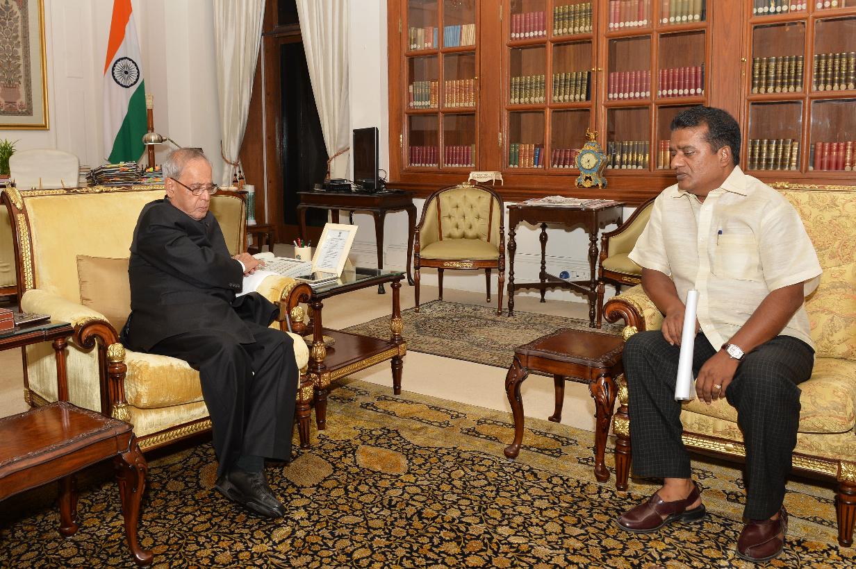 | Caption: | The President of India, Shri Pranab Mukherjee meeting with Shri Salam Azad, at Rashtrapati Bhavan, in New Delhi on September 02, 2015. |