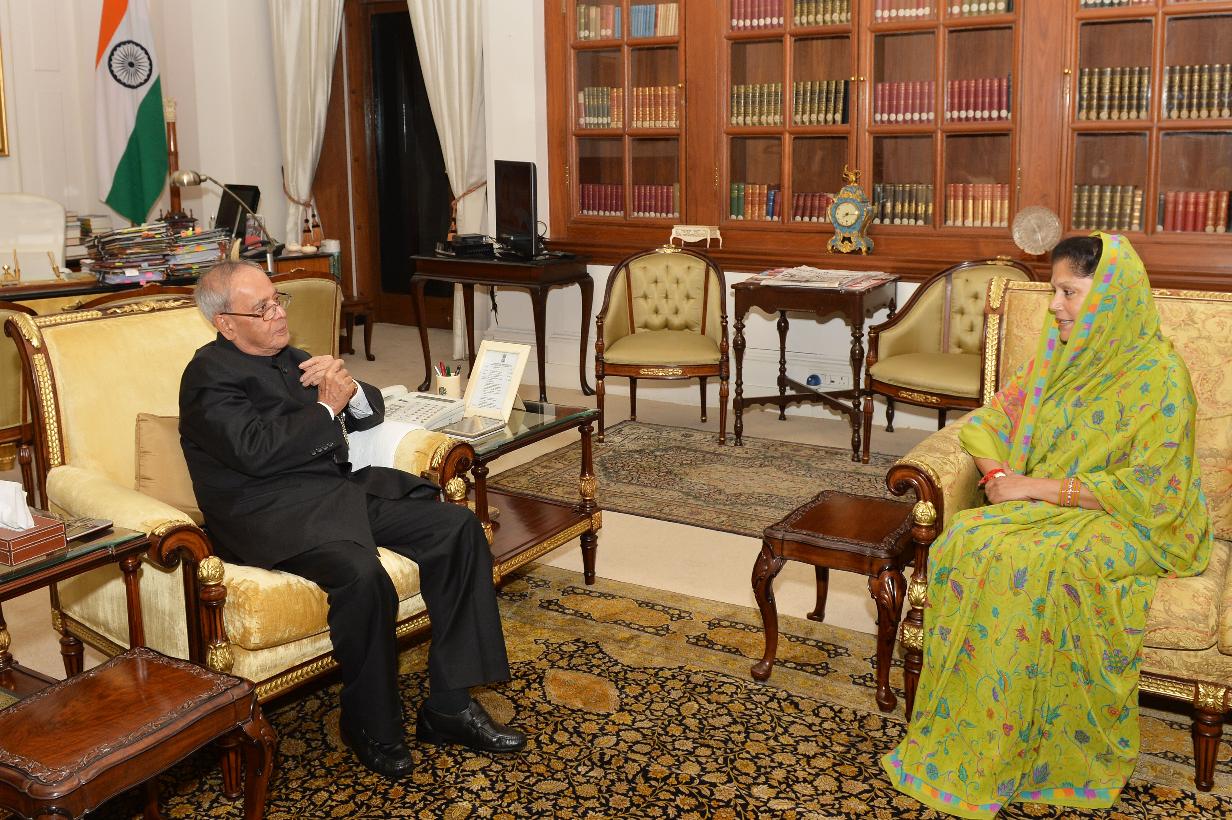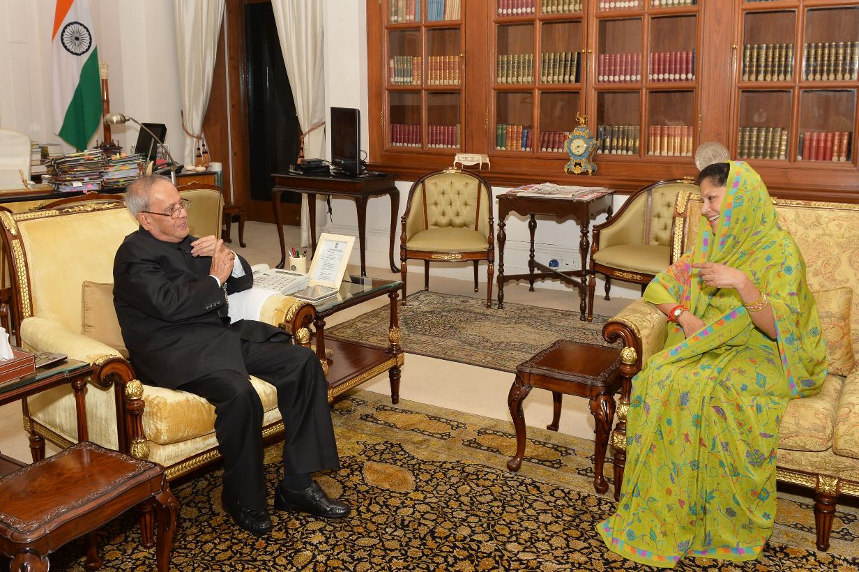 | Caption: | The President of India, Shri Pranab Mukherjee meeting with Smt. Yashodhara Raje Scindia, Ex-MP (LS), at Rashtrapati Bhavan, in New Delhi on September 02, 2015. |