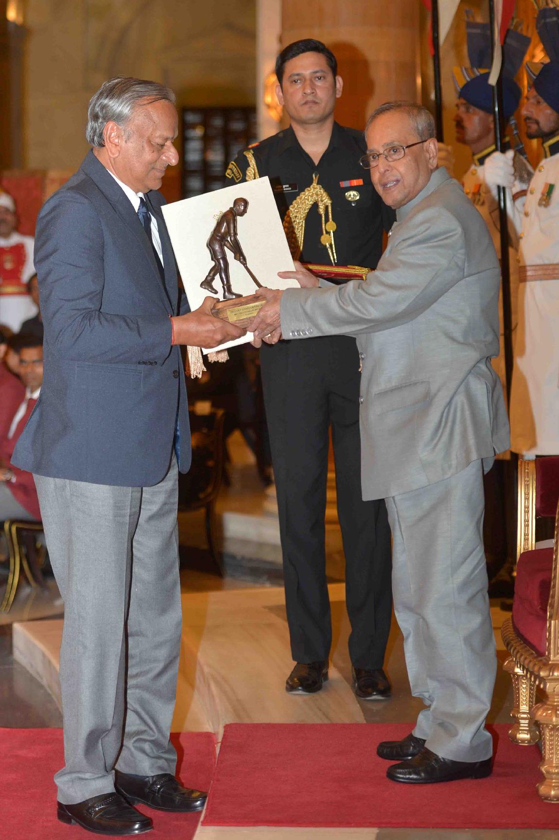 | Caption: | The President of India, Shri Pranab Mukherjee presenting Dhyan Chand Awards, 2015, at the Sports and Adventure Award function, at Rashtrapati Bhavan, in New Delhi on August 29, 2015. |