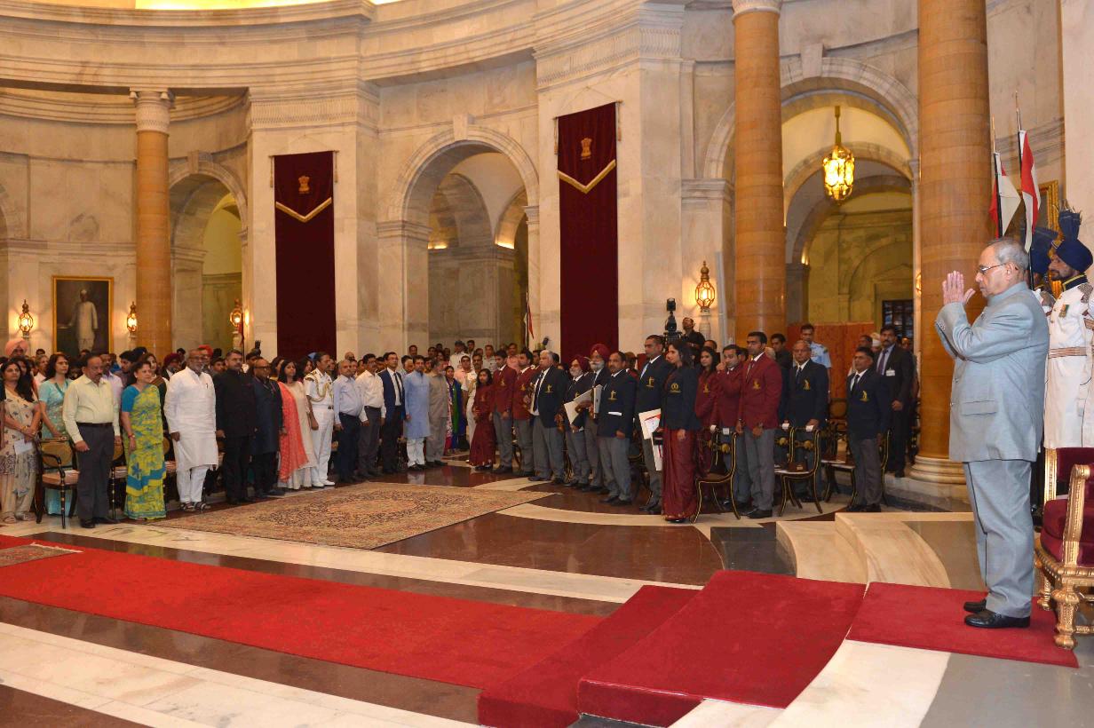 | Caption: | The President of India, Shri Pranab Mukherjee at the Sports and Adventure Award function, at Rashtrapati Bhavan, in New Delhi on August 29, 2015. |