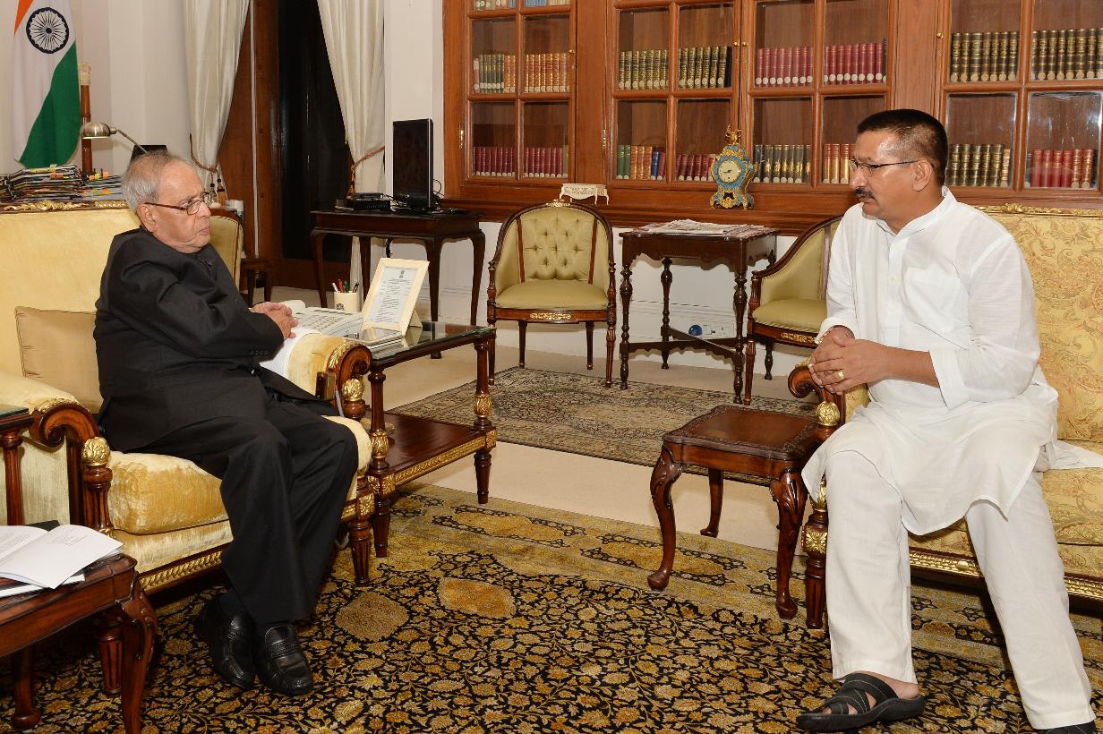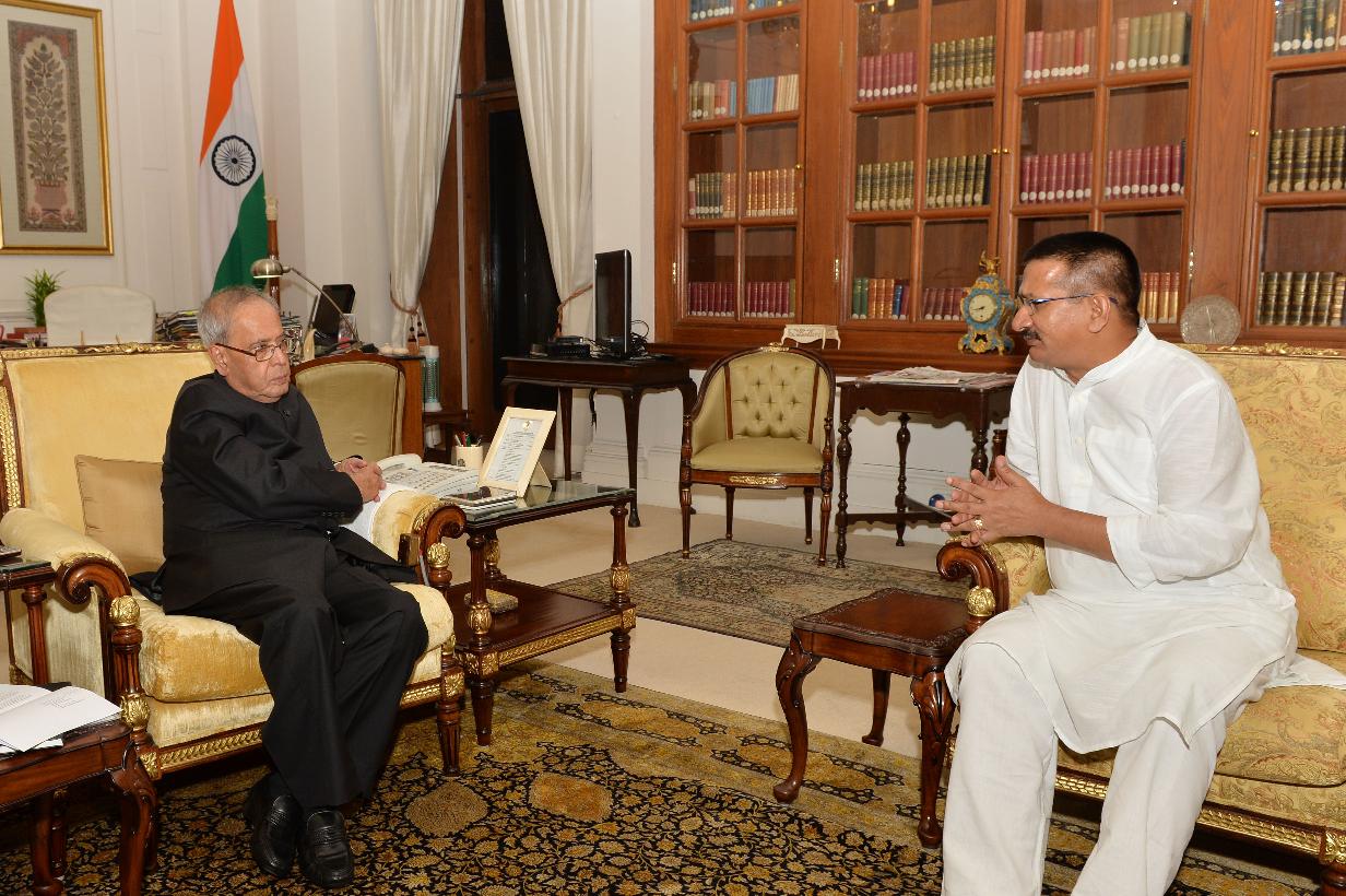 | Caption: | The President of India, Shri Pranab Mukherjee meeting with Shri Kishor Upadhyay, President Uttarakhand Pradesh Congress Committee, at Rashtrapati Bhavan, in New Delhi on September 02, 2015. |