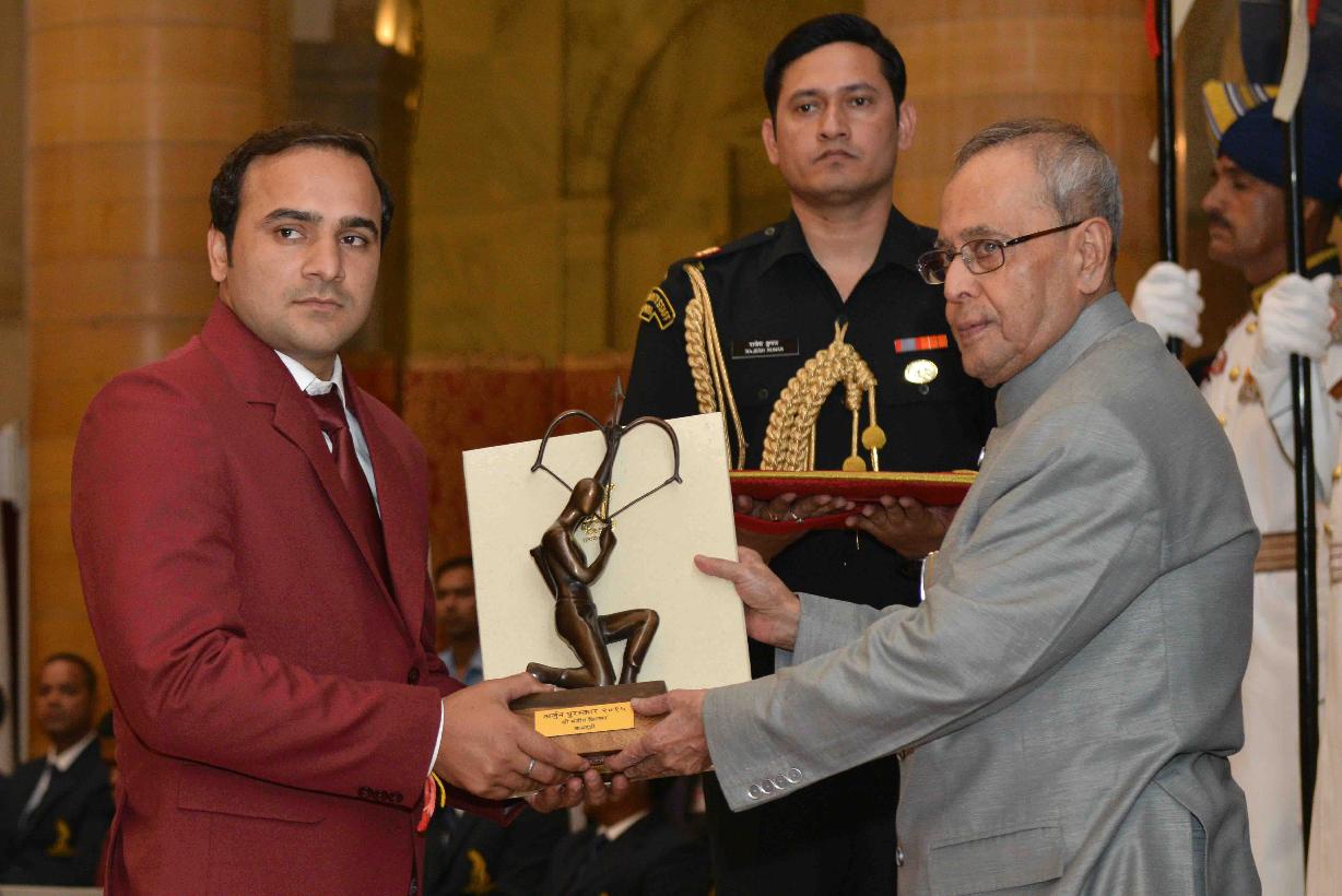 | Caption: | The President of India, Shri Pranab Mukherjee presenting Arjuna Awards, 2015, at the Sports and Adventure Award function, at Rashtrapati Bhavan, in New Delhi on August 29, 2015. |