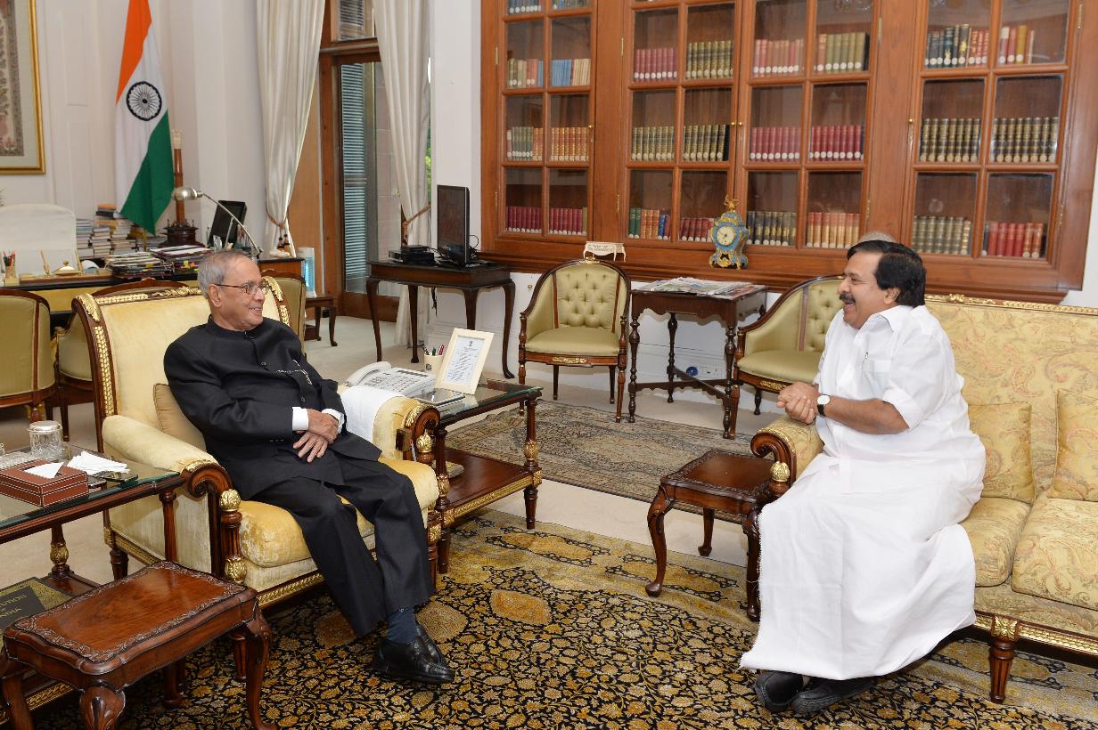 | Caption: | The President of India, Shri Pranab Mukherjee meeting the Minister for Home & Vigilance, Govt. of Kerala, Shri Ramesh Chennithala, at Rashtrapati Bhavan, in New Delhi on July 31, 2015. |