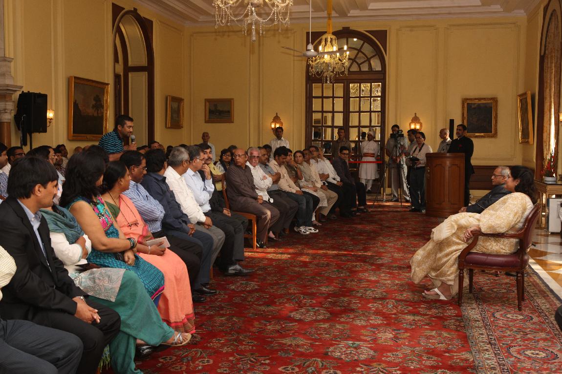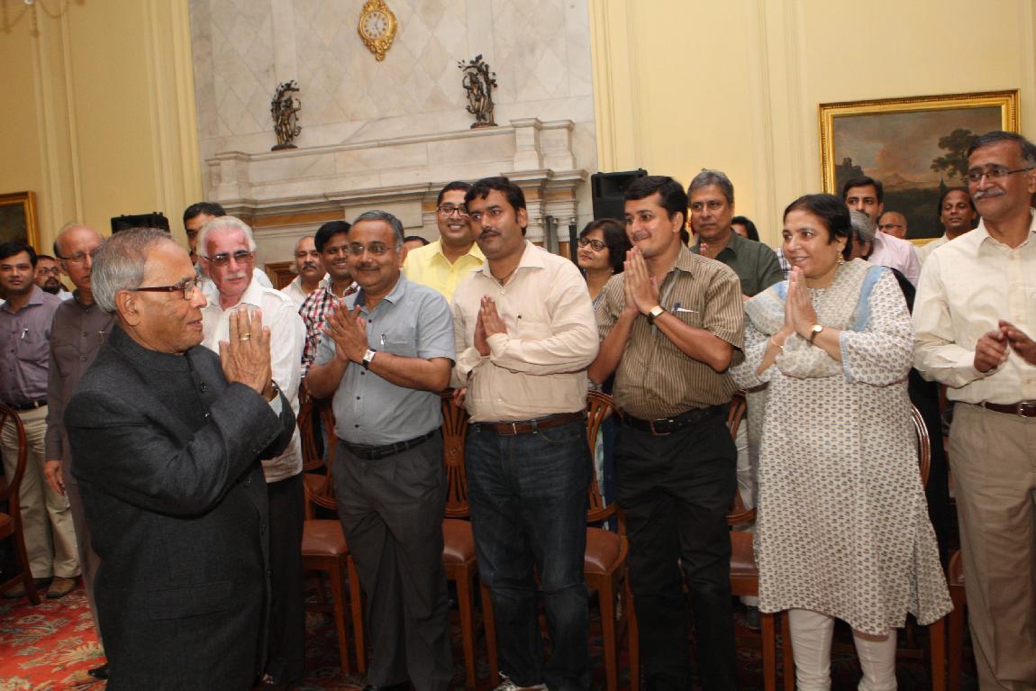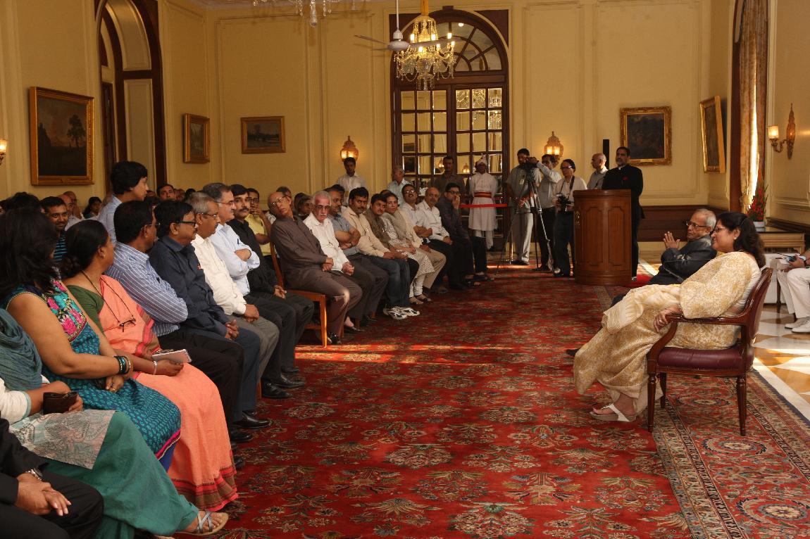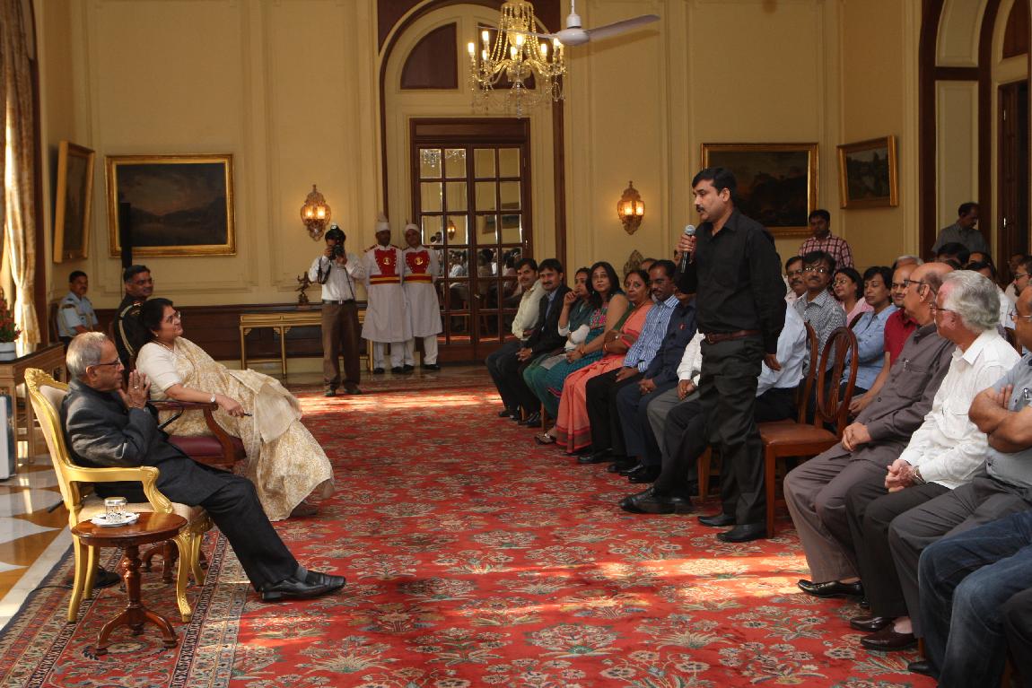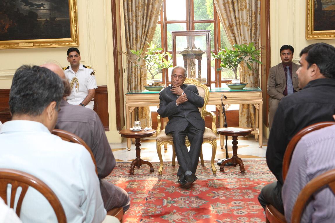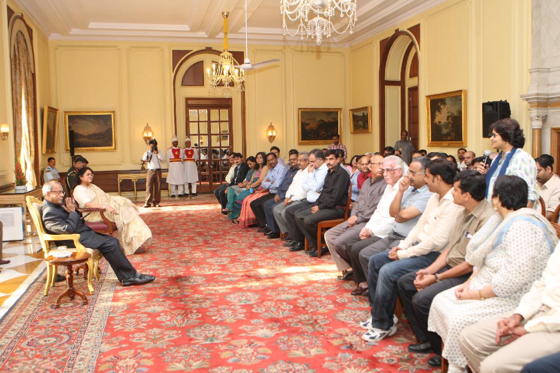 | Caption: | The President of India, Shri Pranab Mukherjee with the Media Person at Yellow Drawing Room on August 06, 2012 |