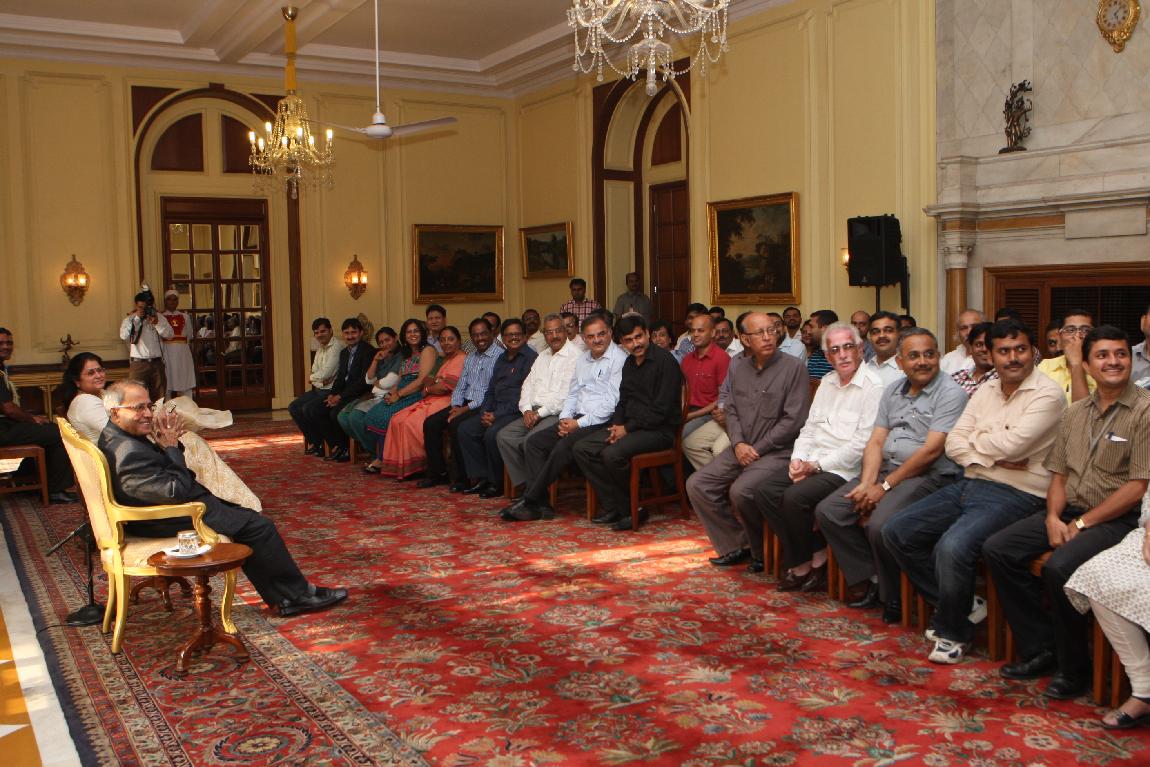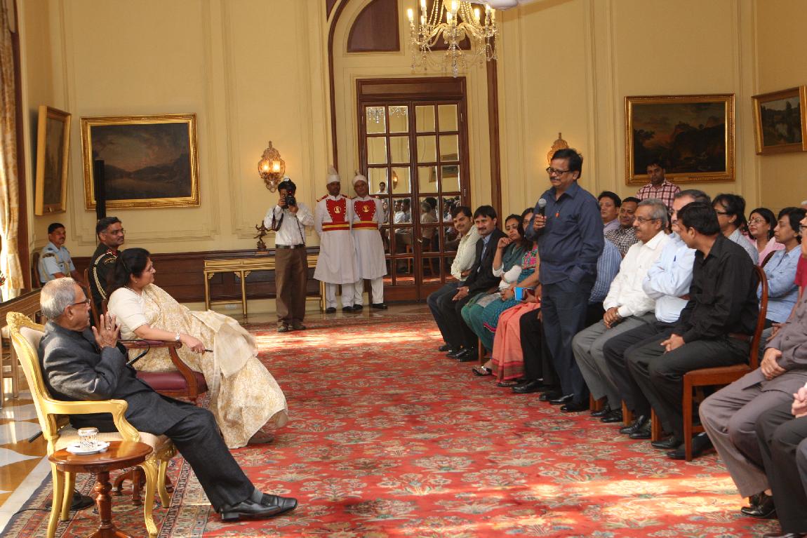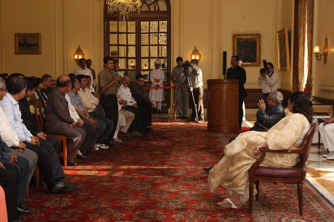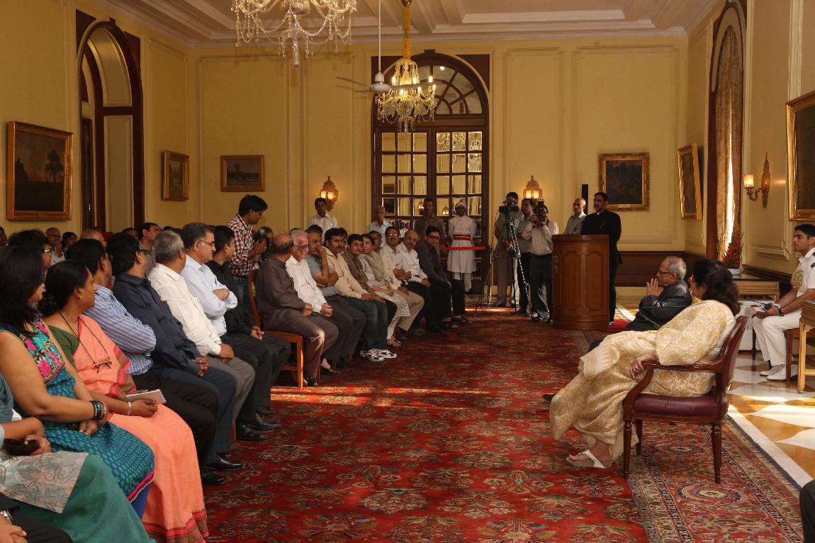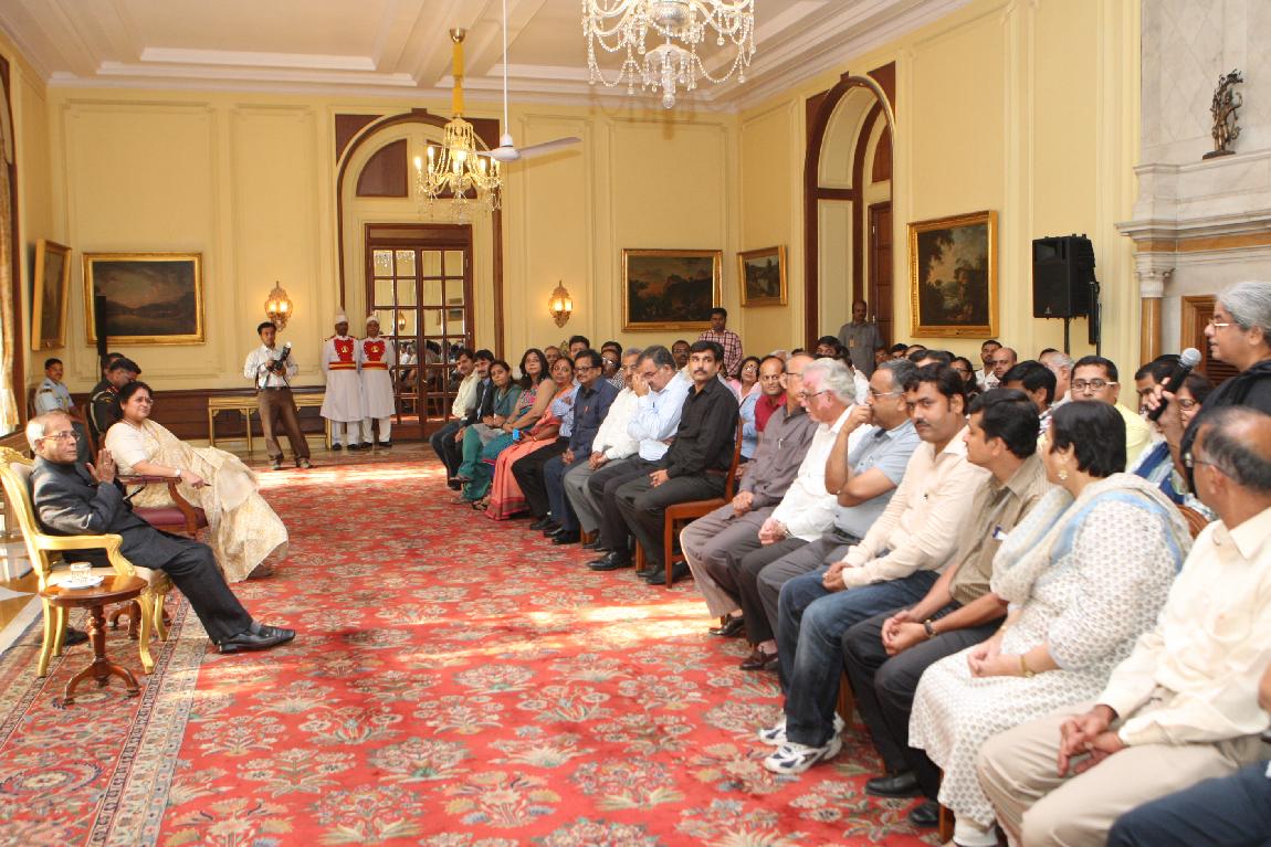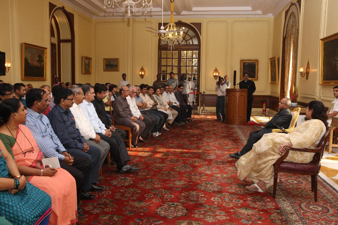 | Caption: | The President of India, Shri Pranab Mukherjee with the Media Person at Yellow Drawing Room on August 06, 2012 |