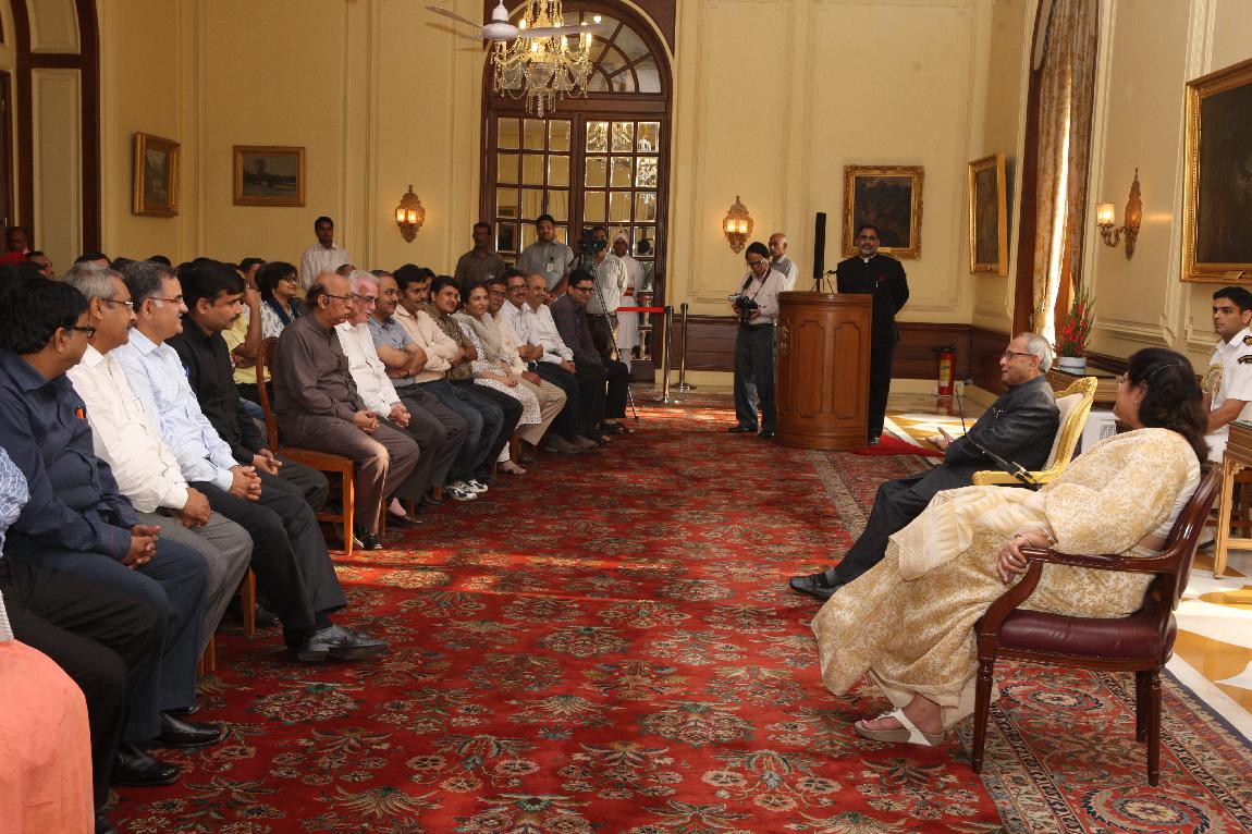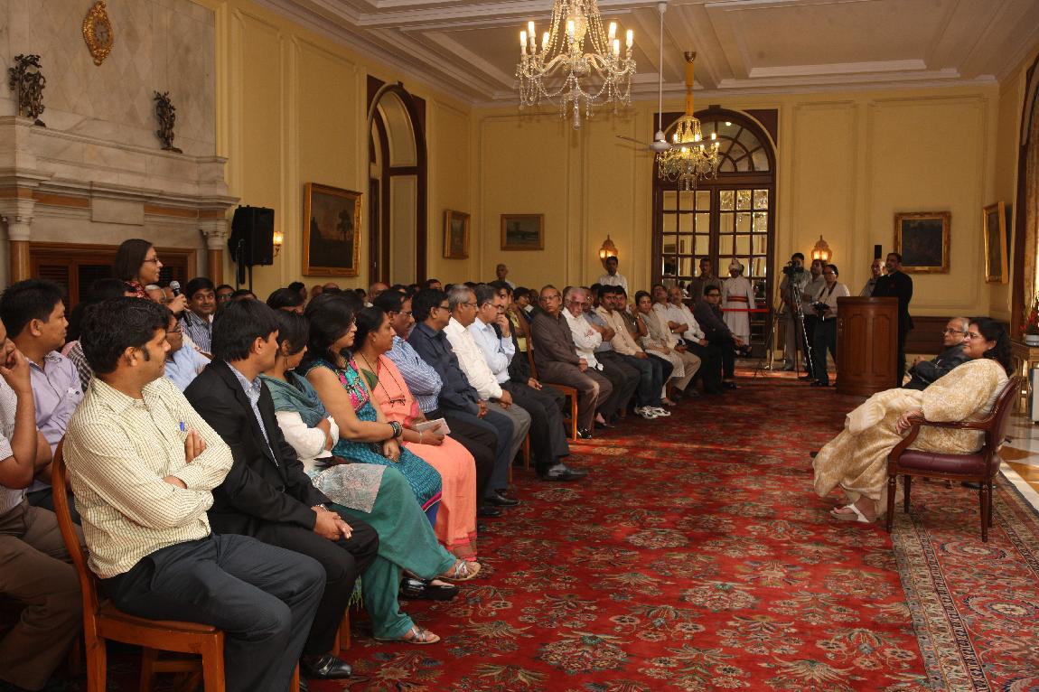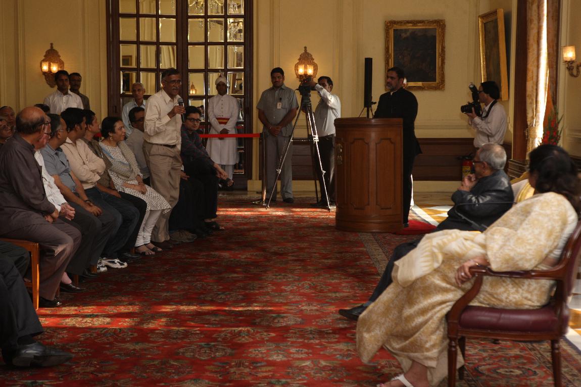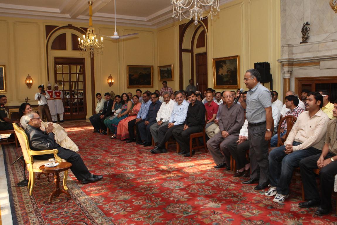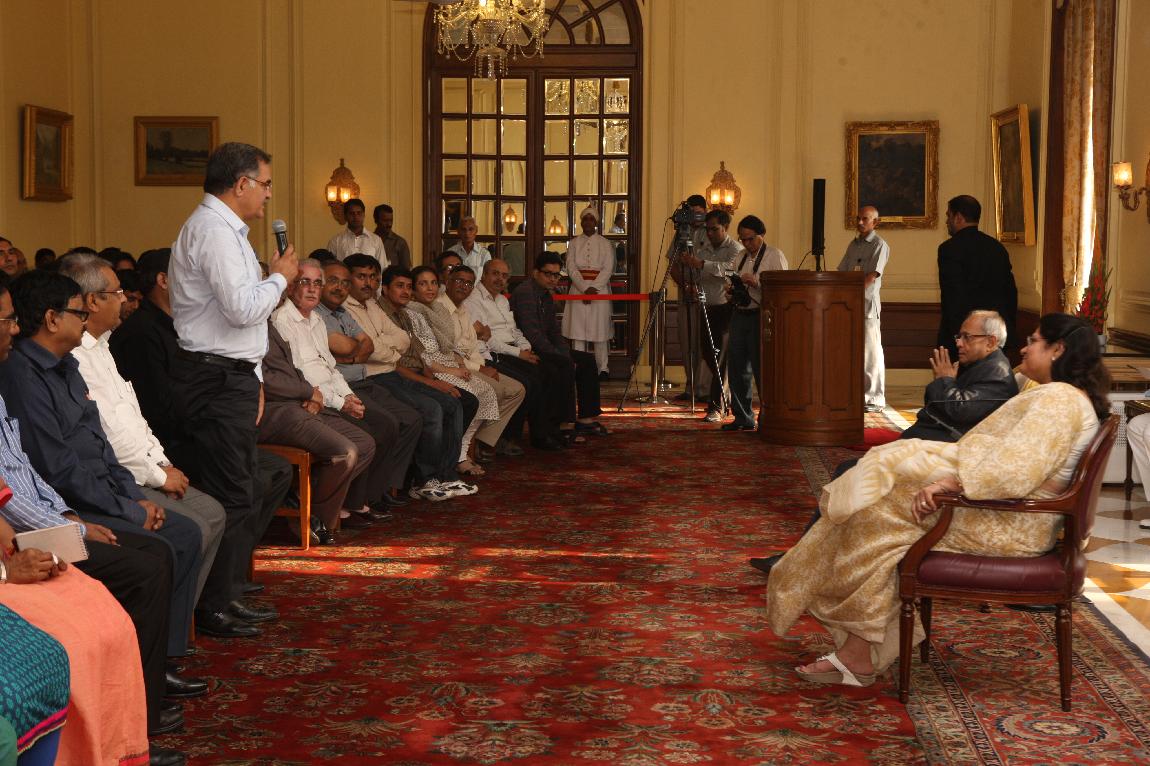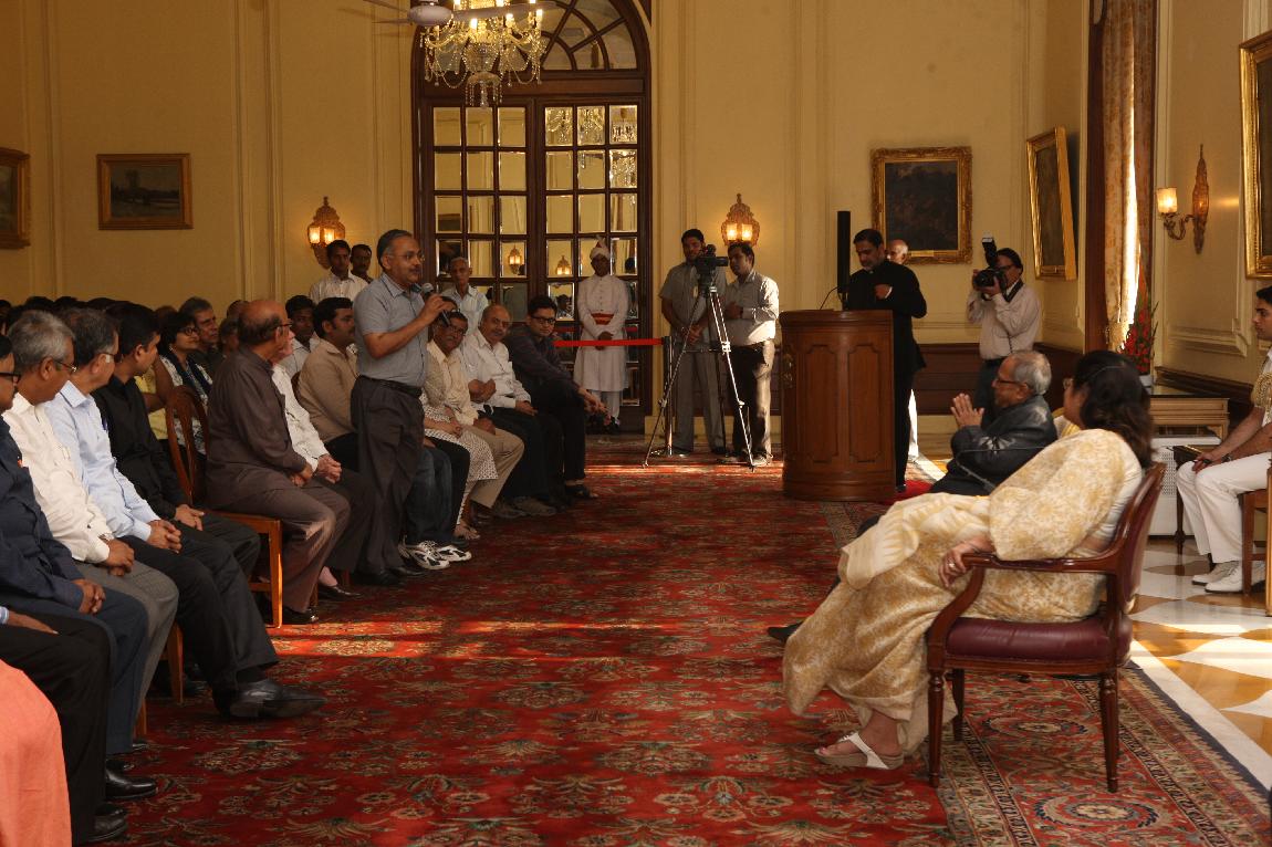 | Caption: | The President of India, Shri Pranab Mukherjee with the Media Person at Yellow Drawing Room on August 06, 2012 |
