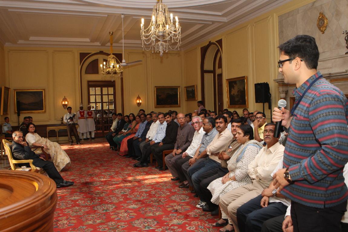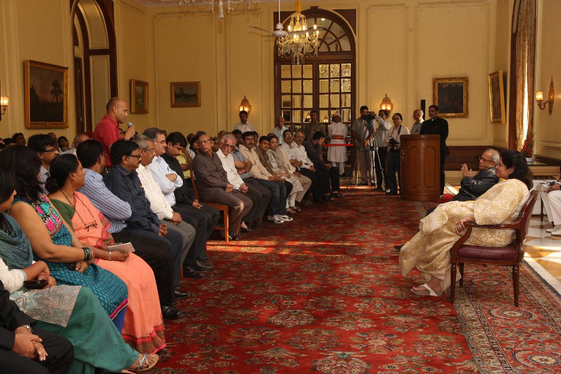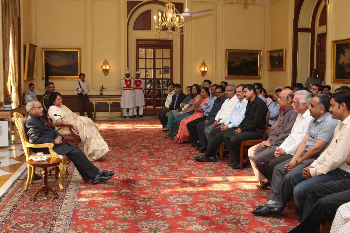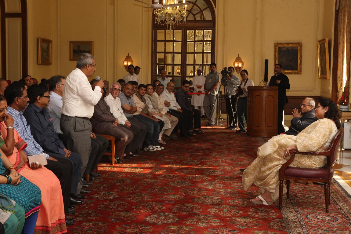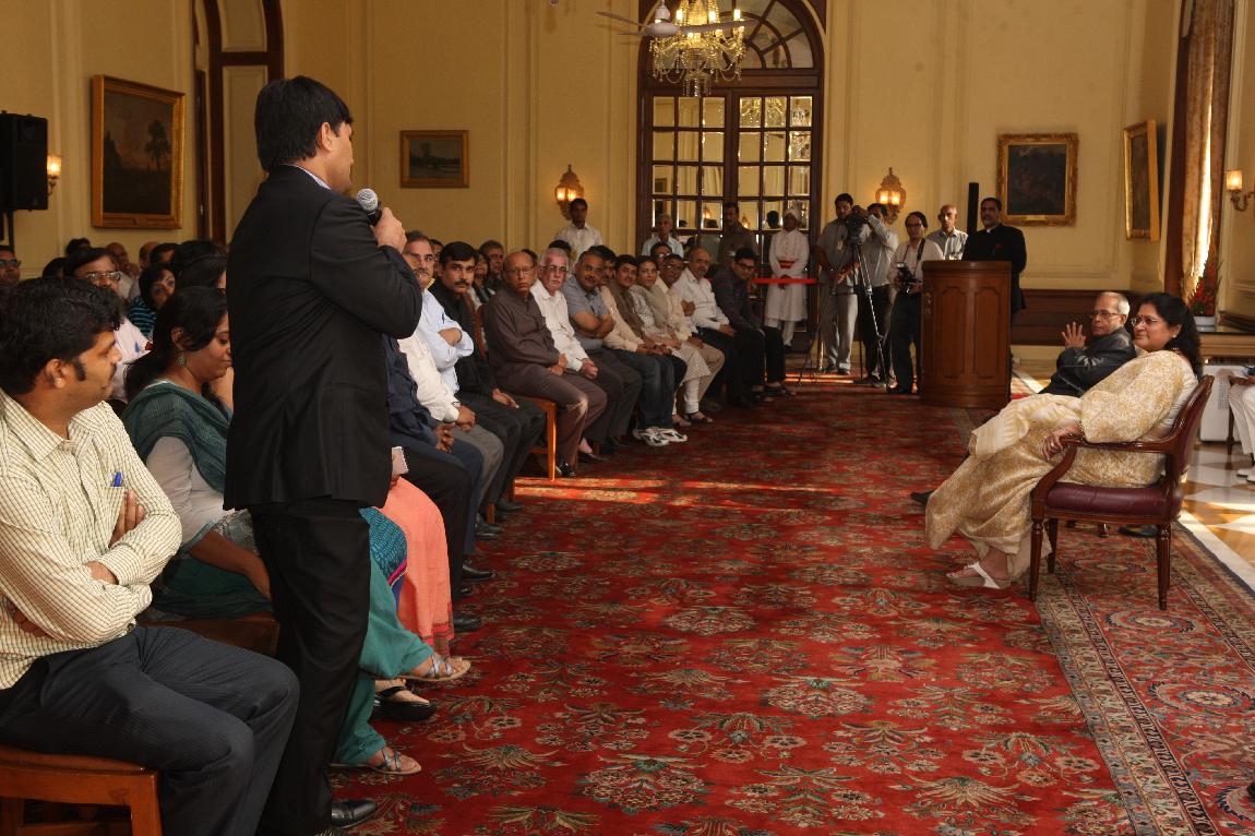 | Caption: | The President of India, Shri Pranab Mukherjee with the Media Person at Yellow Drawing Room on August 06, 2012 |