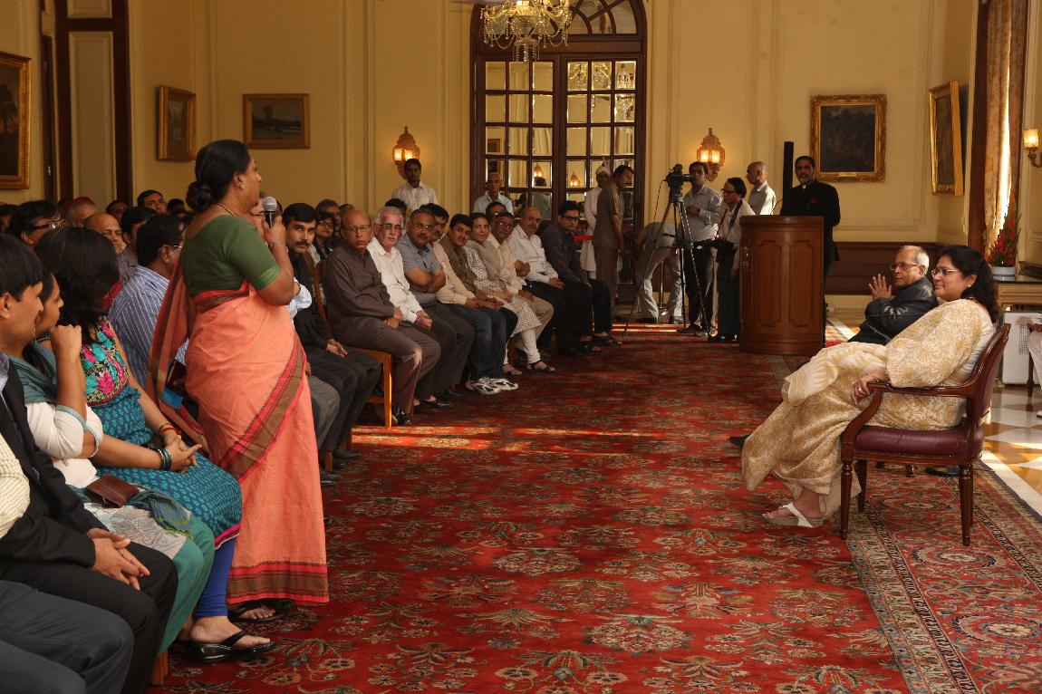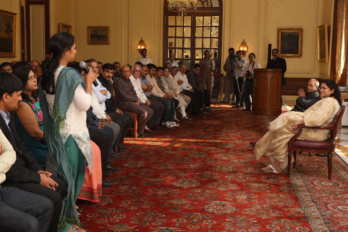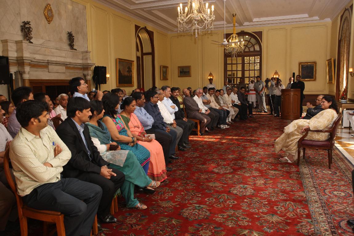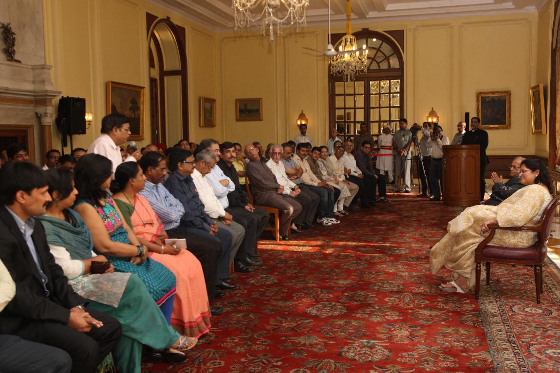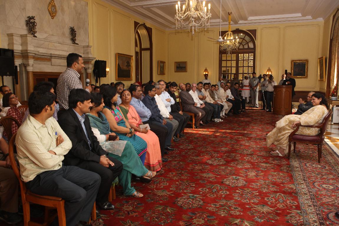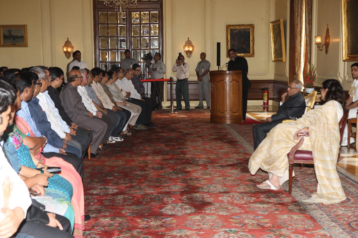 | Caption: | The President of India, Shri Pranab Mukherjee with the Media Person at Yellow Drawing Room on August 06, 2012 |