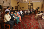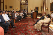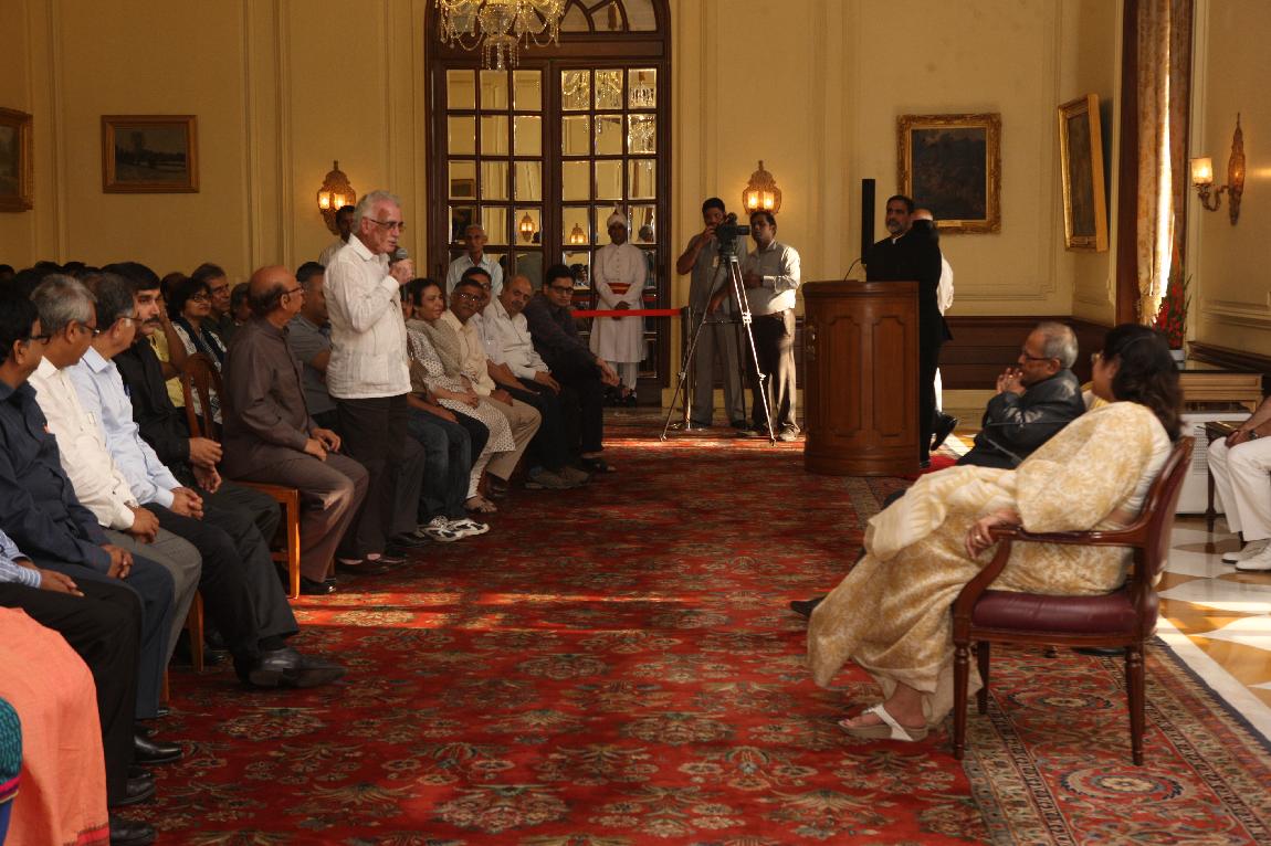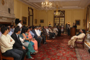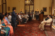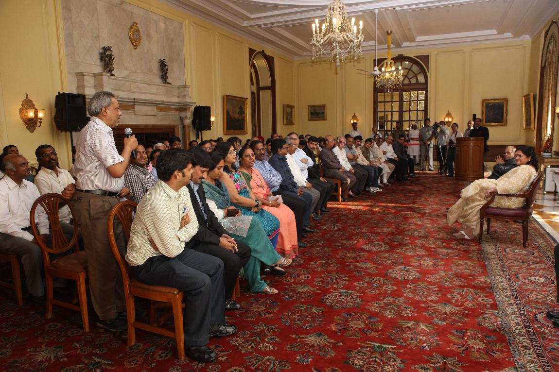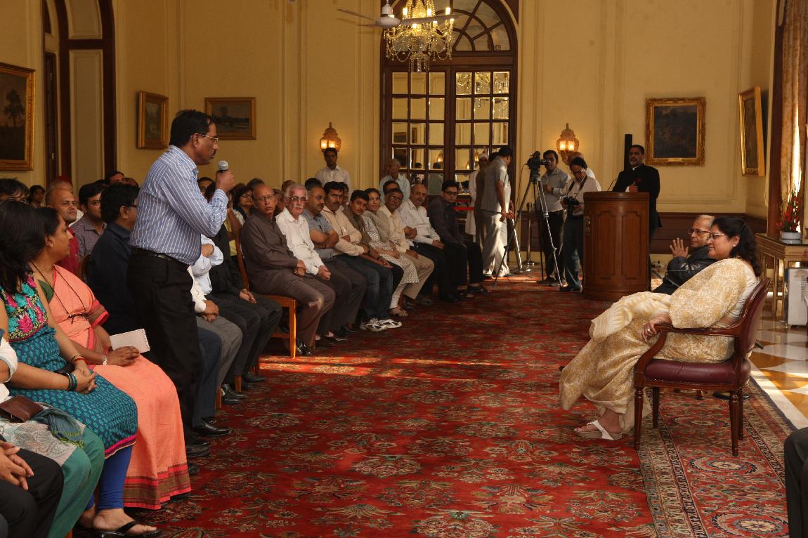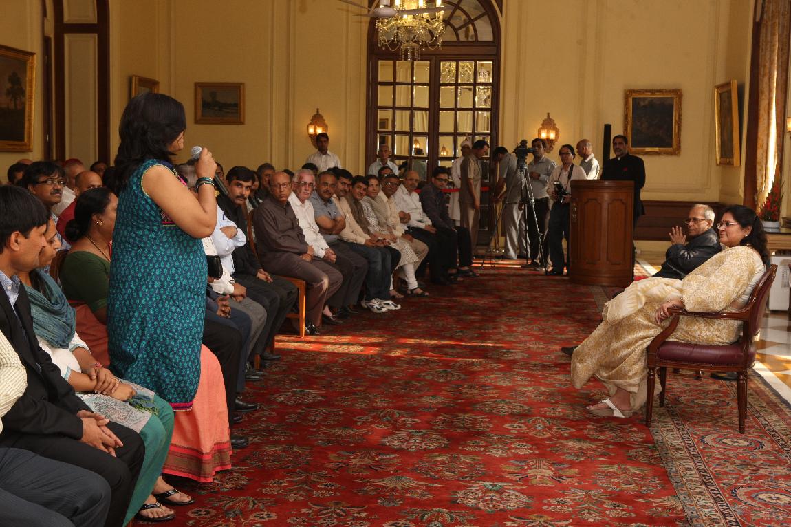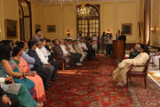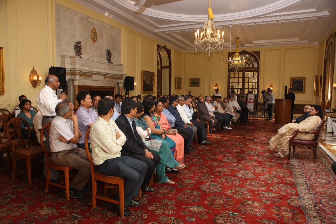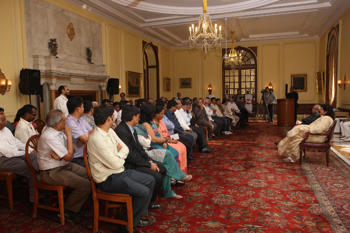 | Caption: | The President of India, Shri Pranab Mukherjee with the Media Person at Yellow Drawing Room on August 06, 2012 |