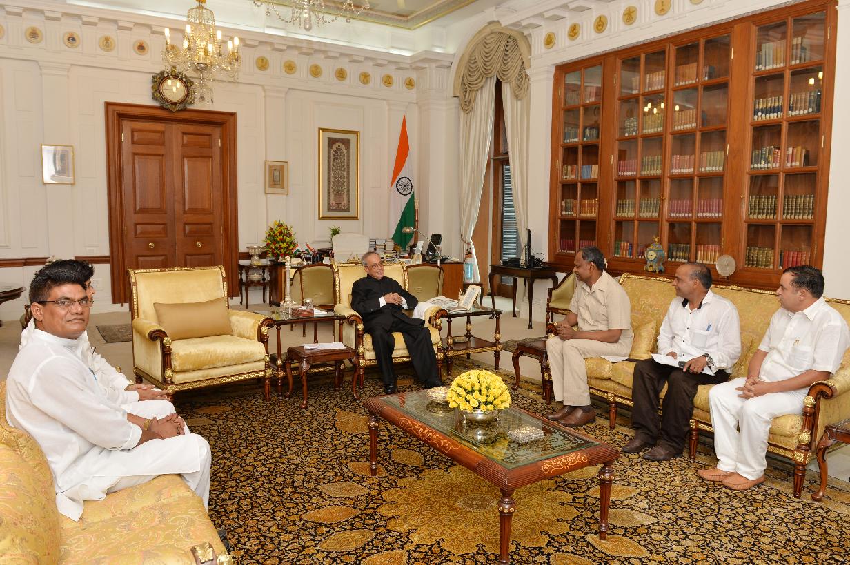 | Caption: | The President of India, Shri Pranab Mukherjee meeting the MP (LS) and National Chairman, All India Confederation of SC/ST Organizations, Dr. Udit Raj and others, at Rashtrapati Bhavan, in New Delhi on July 17, 2015. |