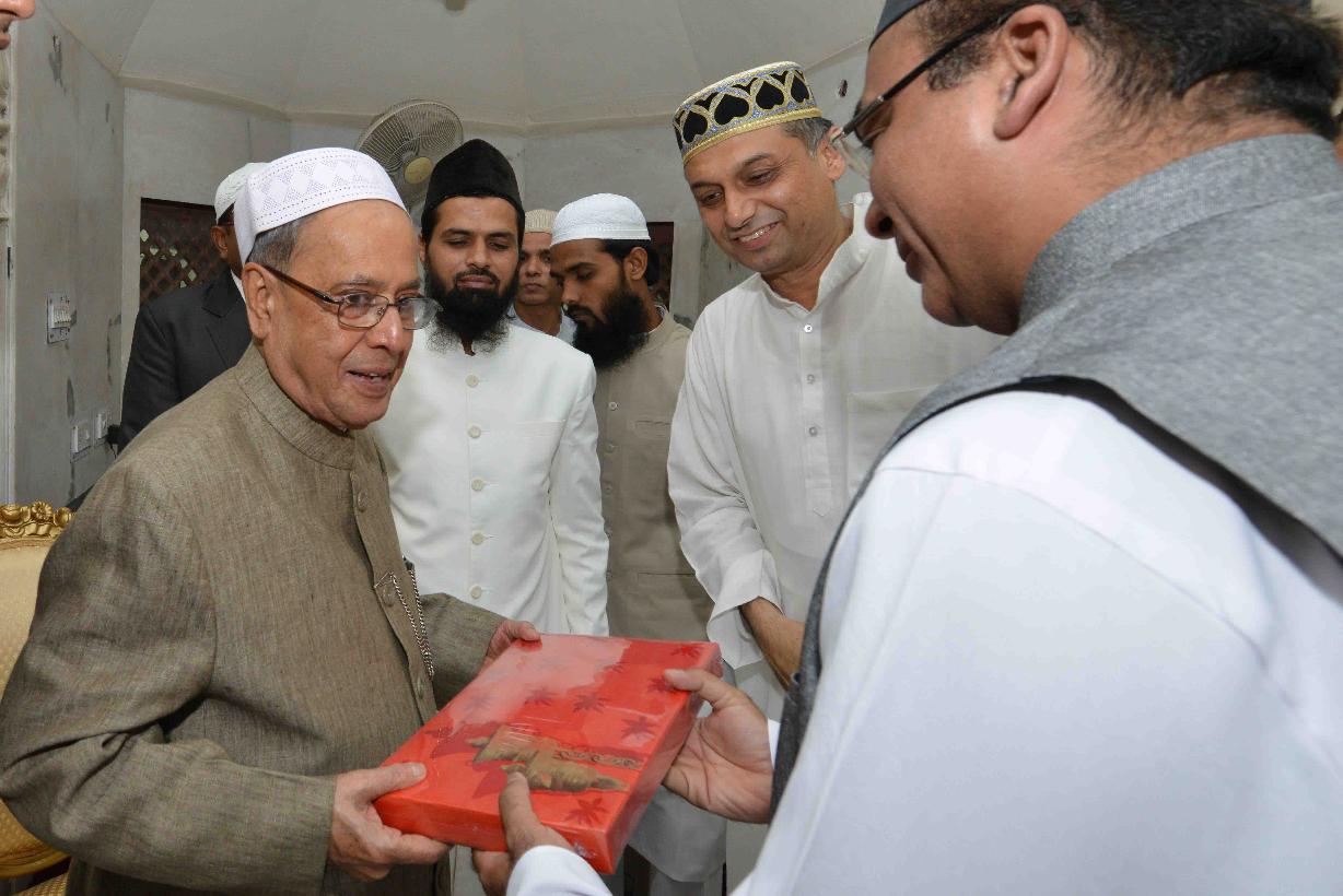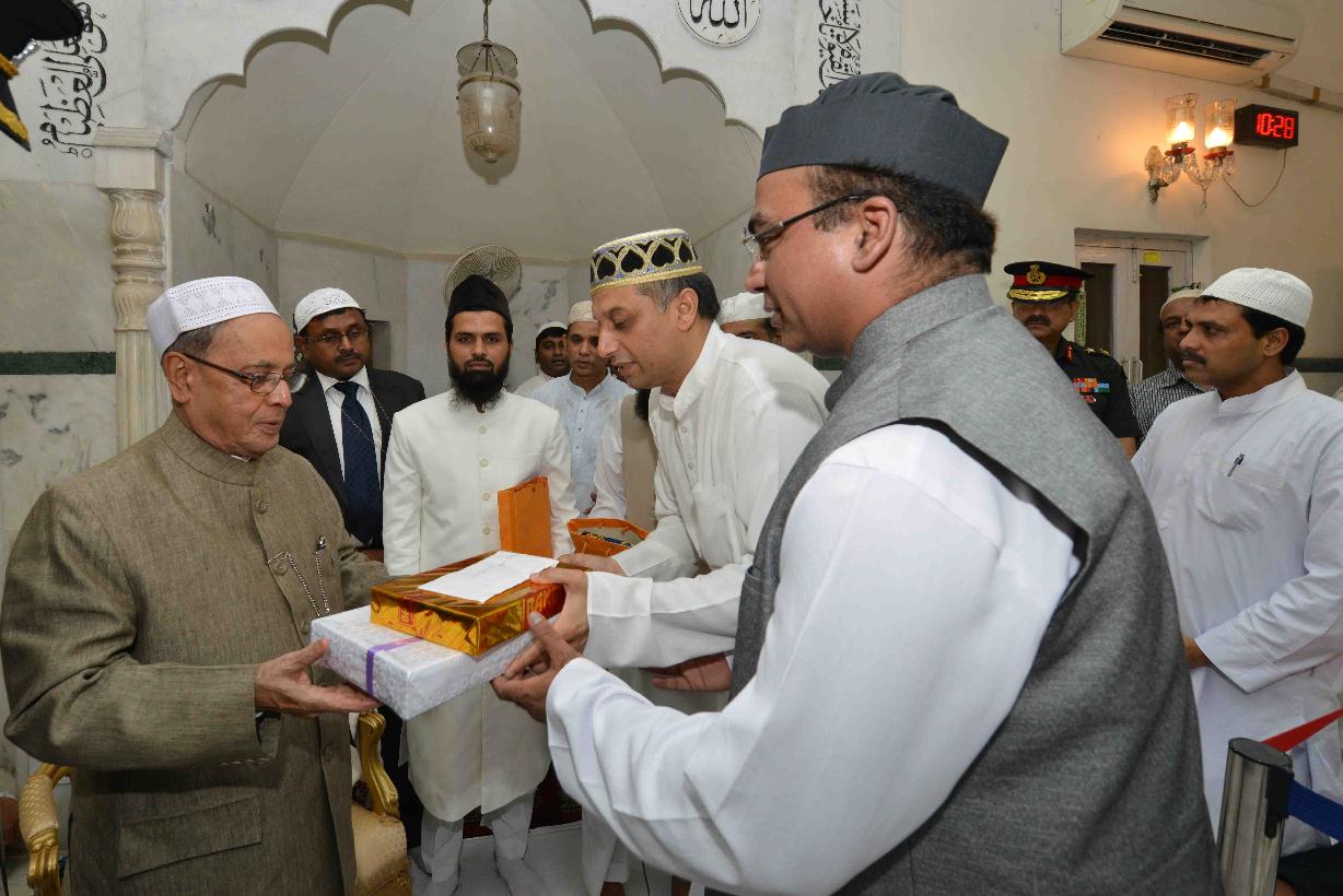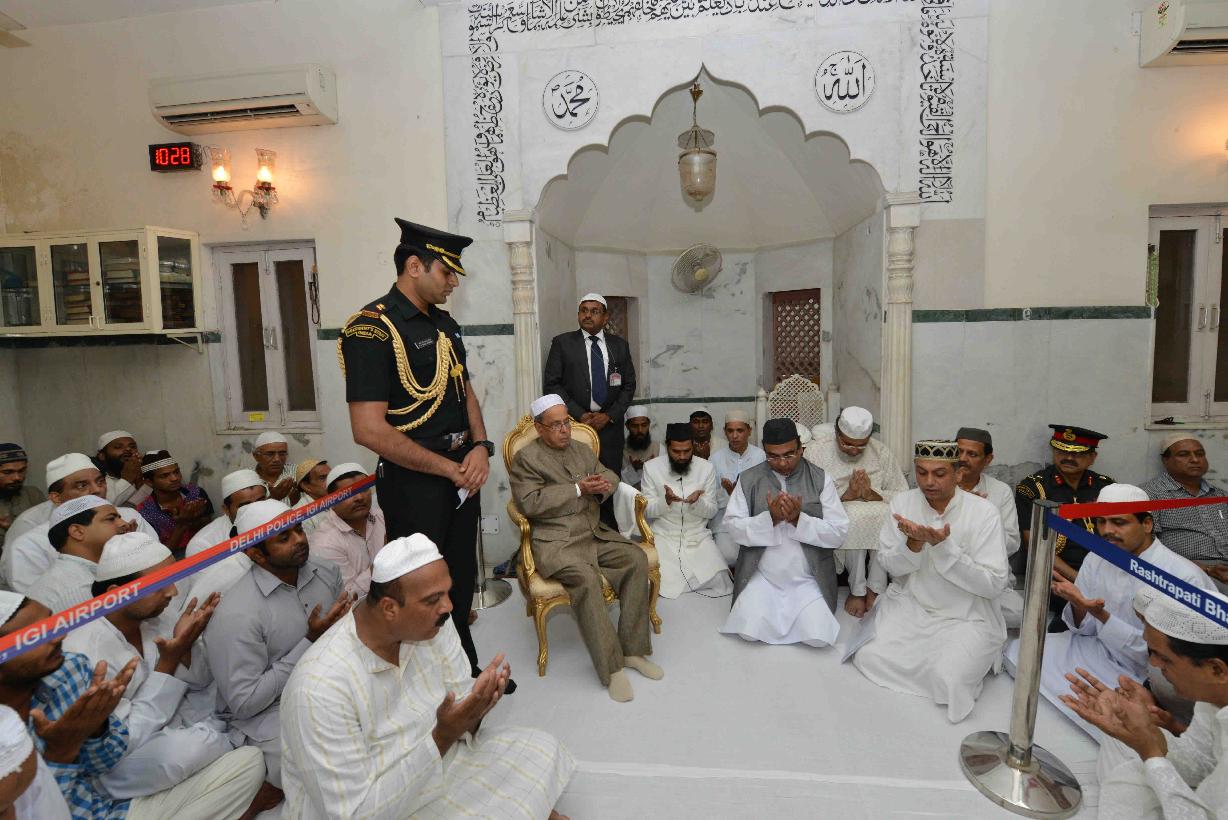 | Caption: | The President of India, Shri Pranab Mukherjee visits President's Estate Masjid on the occasion of 'Khatam Shareef', in New Delhi on July 10, 2015. |