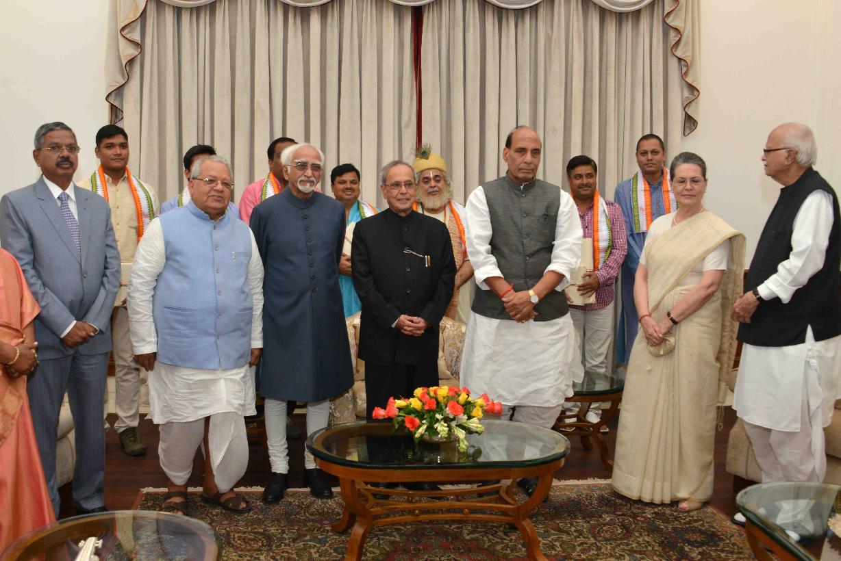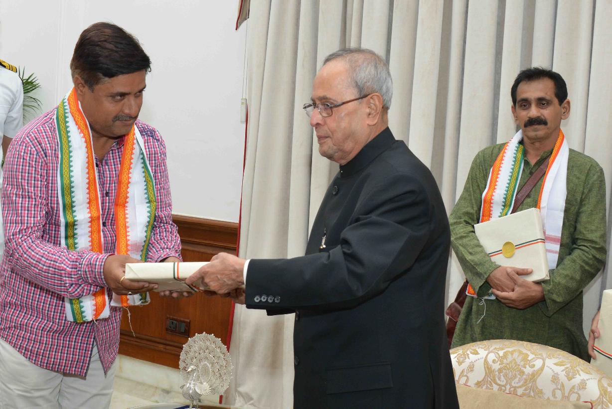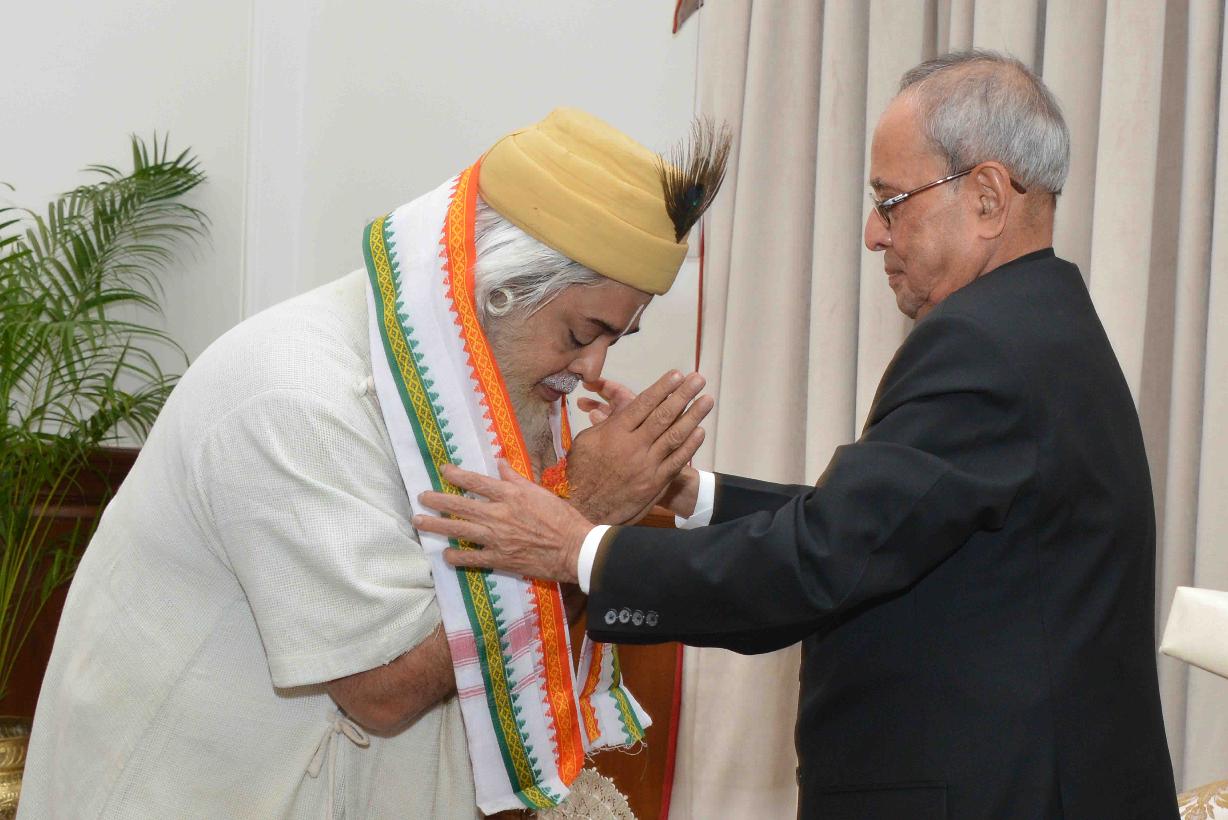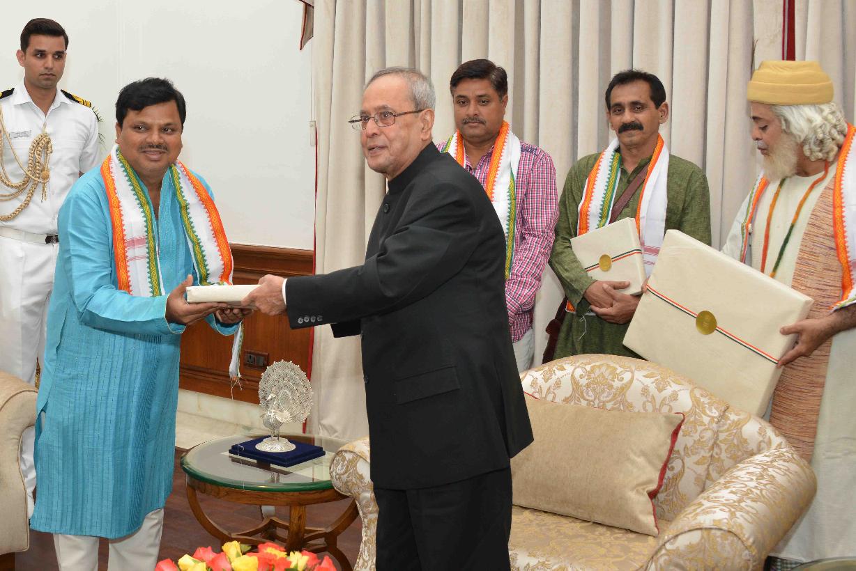 | Caption: | The President of India, Shri Pranab Mukherjee with the artists after witnessing the Mono Act on 'Kabir' by Shri Shekhar Sen, at Rashtrapati Bhavan Cultural Centre, in New Delhi on July 25, 2015. |