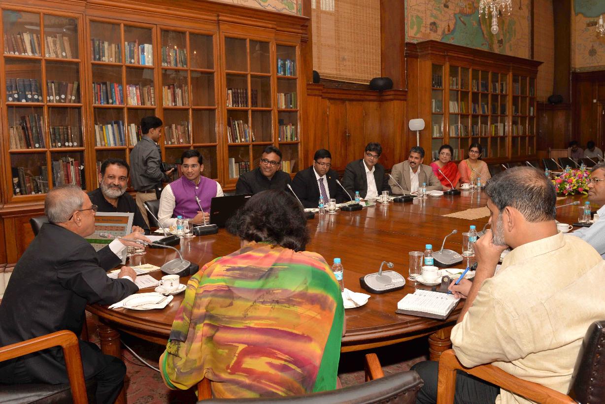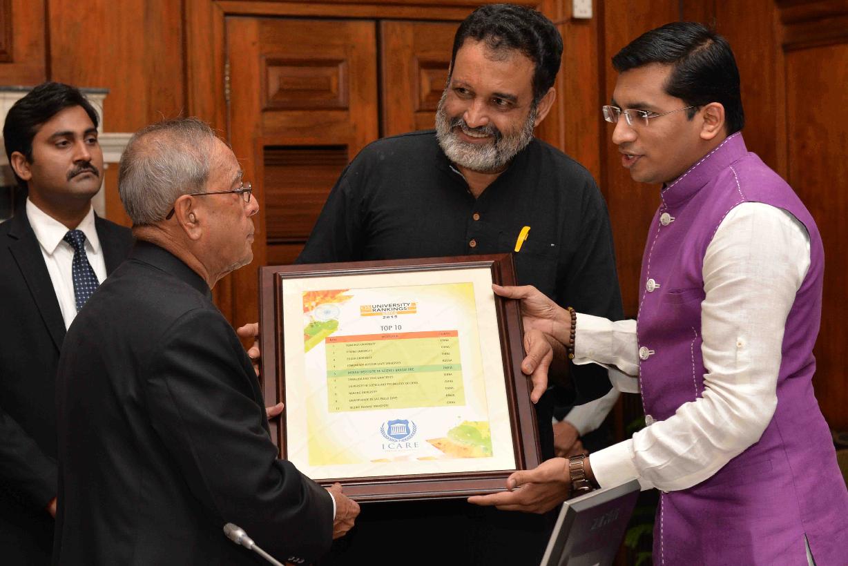 | Caption: | The President of India, Shri Pranab Mukherjee receiving the first copy of 'QS BRICS Universities Ranking 2015' from Shri TV Mohandas Pai, Chairman, Indian Centre for Academic Rankings and Excellence (ICARE) at Rashtrapati Bhavan , in New Delhi on July 11, 2015. |