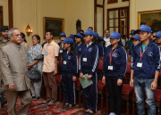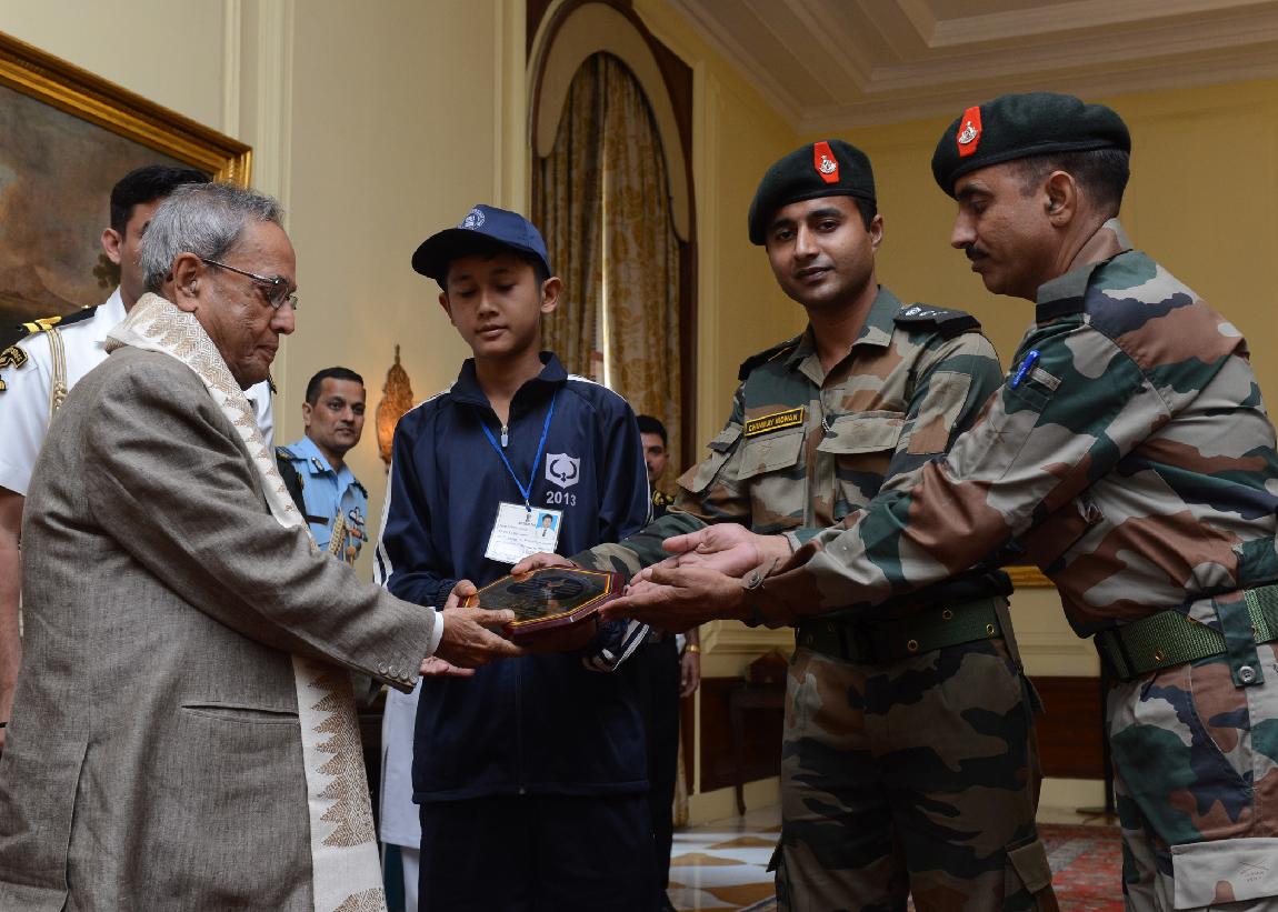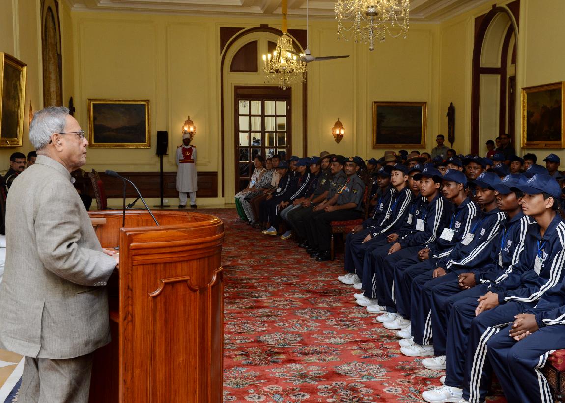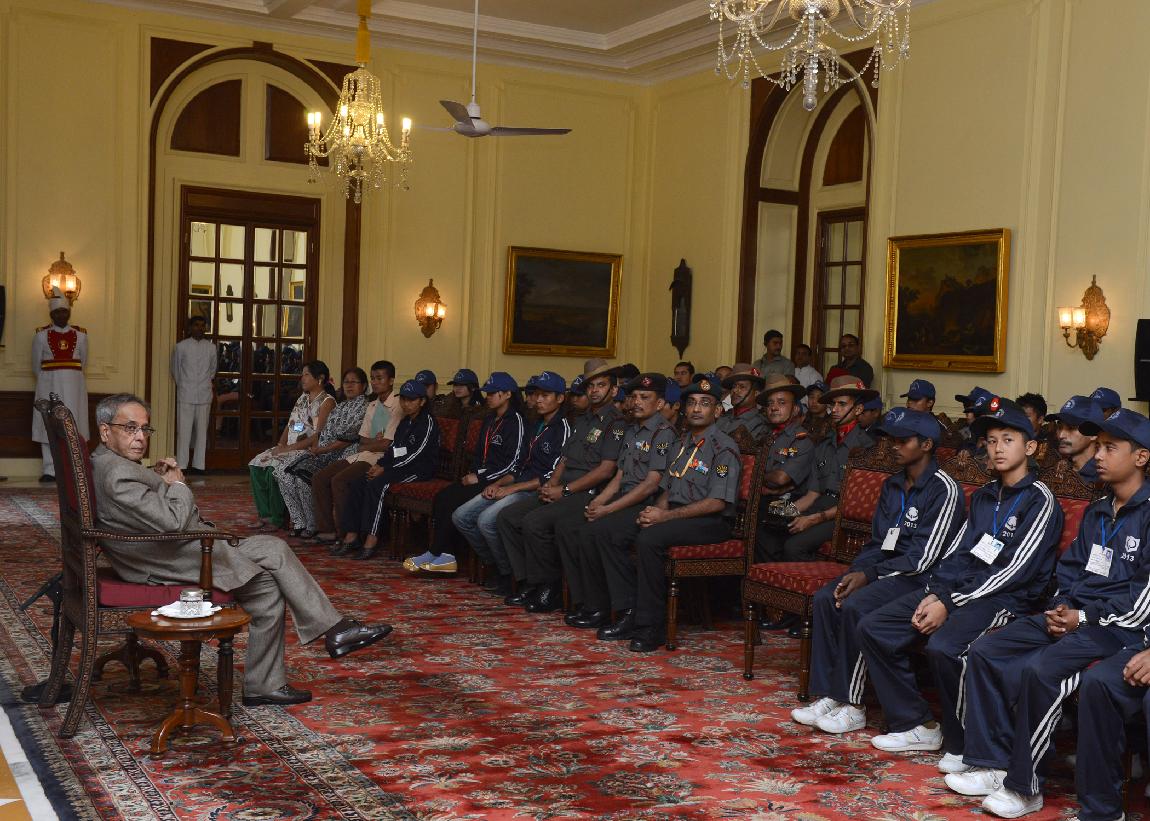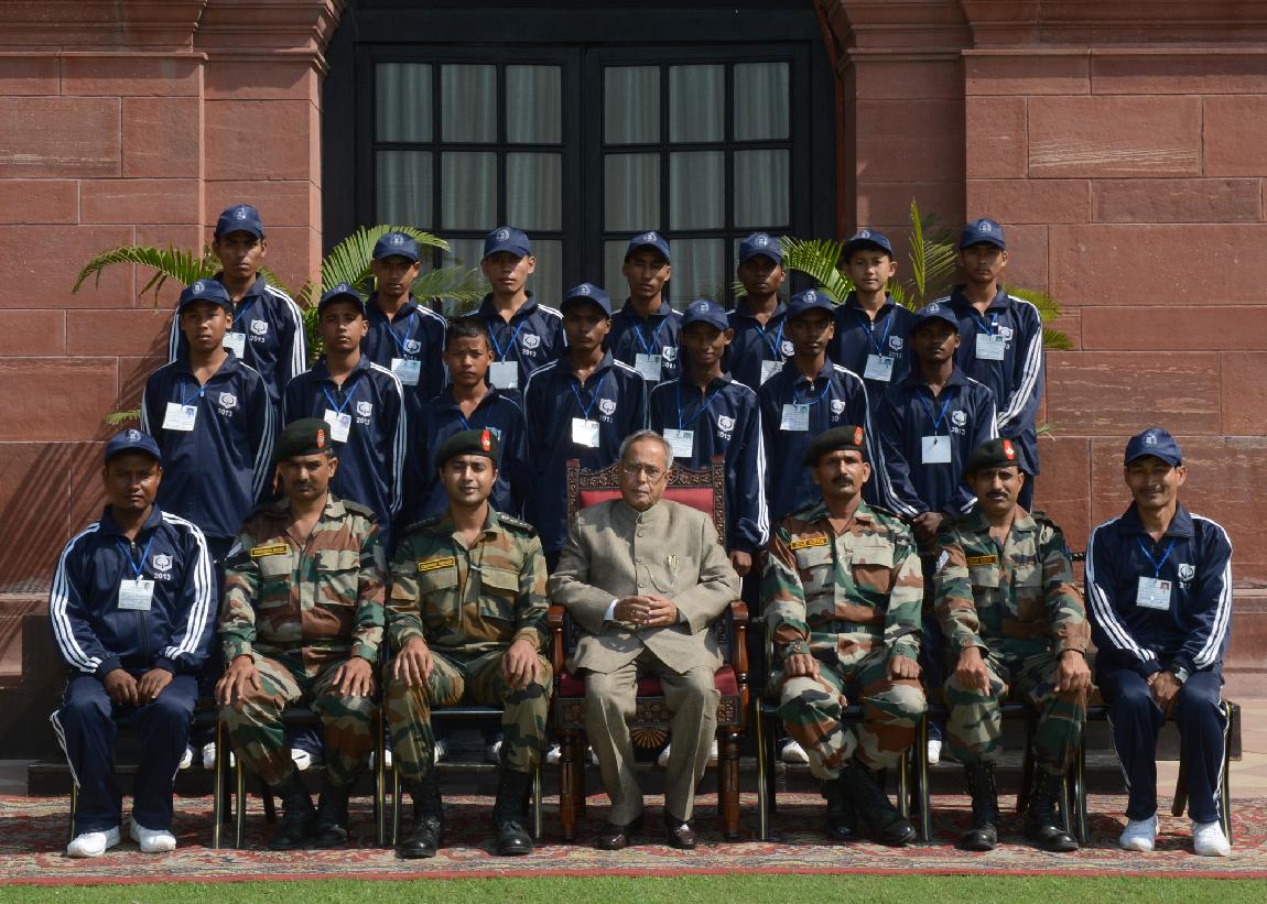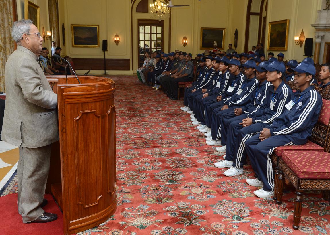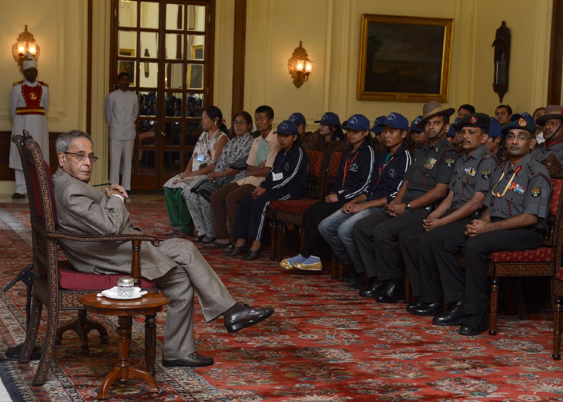 | Caption: | The President of India, Shri Pranab Mukherjee interacting with the Students from Kokrajhar & Chirang Districts of Assam, Shangshak & Manipur at Rashtrapati Bhavan in New Delhi on Oct 19, 2013 |