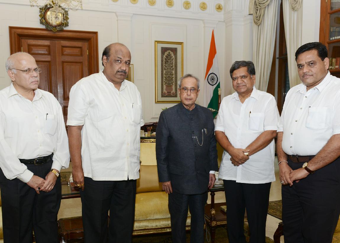 | Caption: | The President of India, Shri Pranab Mukherjee meeting with Shri Jagdish Shettar, Leader of Opposition, Karnataka Legislative Assembly alongwith Shri T. Vijayakumar, Shri BD Shivalingappa and Shri RT Kulkarni, at Rashtrapati Bhavan, in New Delhi on August 06, 2015. |