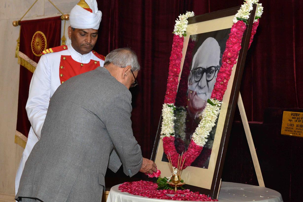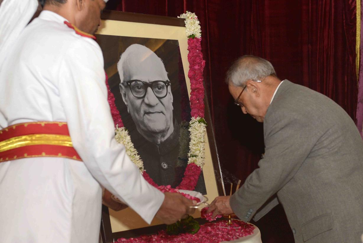 | Caption: | The President of India, Shri Pranab Mukherjee paying floral tributes at the portrait of the Former President of India, Late Shri Varhagiri Venkata Giri on his Birth Anniversary, at Rashtrapati Bhavan, in New Delhi on August 10, 2015. |