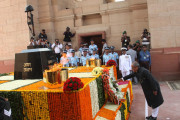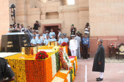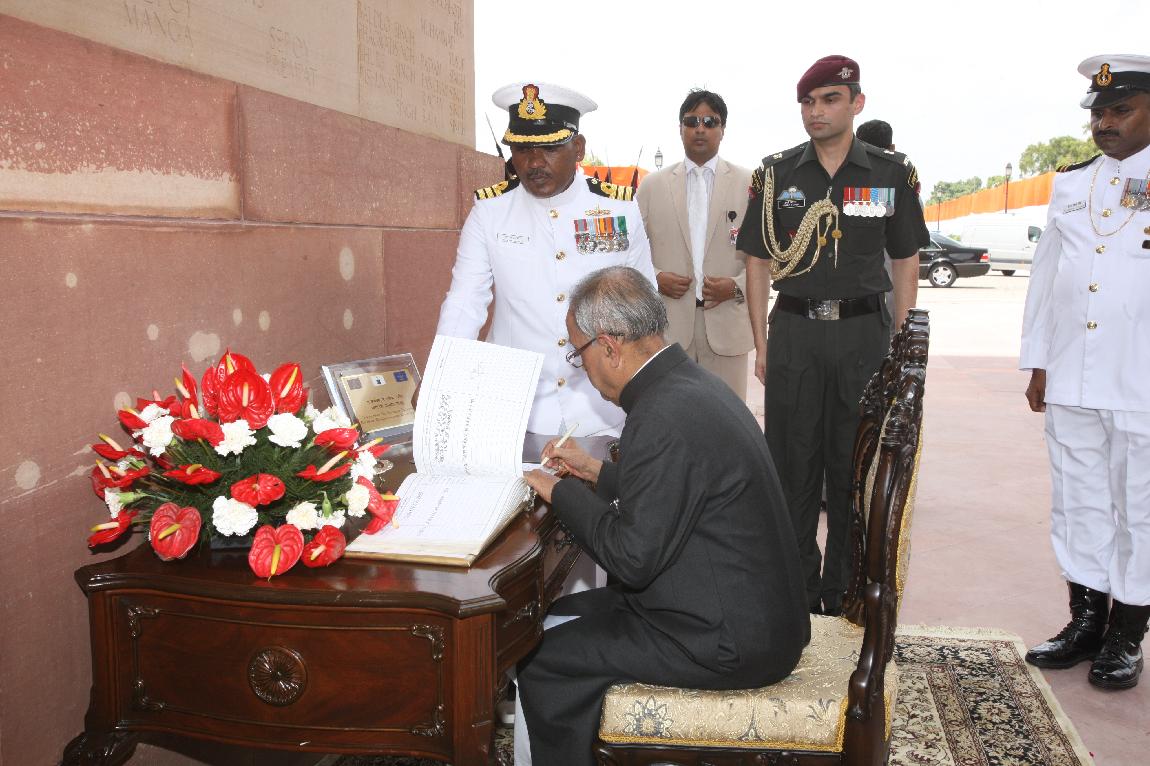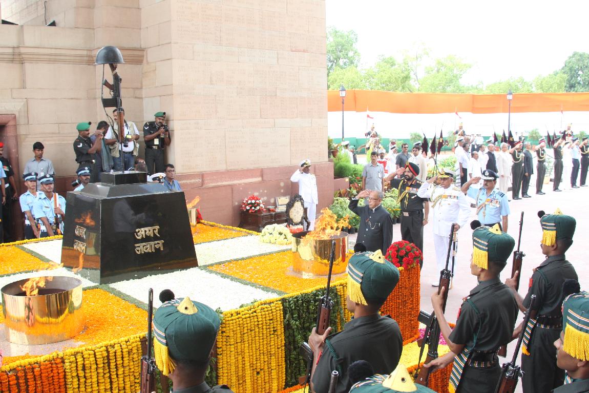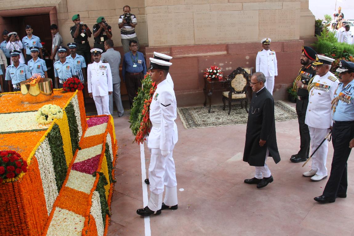 | Caption: | The President of India, Shri Pranab Mukherjee leaves North Court for India Gate to pay tributes at Amar Jawan Jyoti on August 15, 2012 |