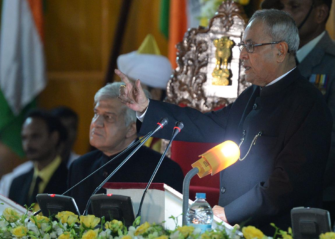 | Caption: | The President of India, Shri Pranab Mukherjee addressing to the Members of the Meghalaya Legislative Assembly at Shillong in Meghalaya on Oct 21, 2013 |