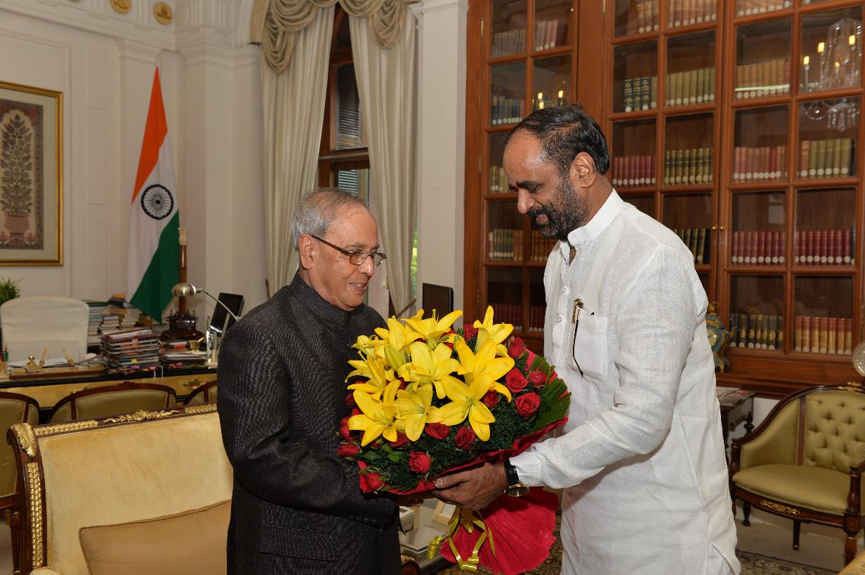 | Caption: | The President of India, Shri Pranab Mukherjee meeting with the Minister of State for Chemicals and Fertilizers, Shri Hansraj Gangaram Ahir, at Rashtrapati Bhavan, in New Delhi on August 13, 2015. |