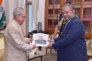 | Caption: | The President of India, Shri Pranab Mukherjee meeting with the Ambassador-designate of India to the Republic of Sudan, Shri Amrit Lugun, at Rashtrapati Bhavan, in New Delhi on August 17, 2015. |