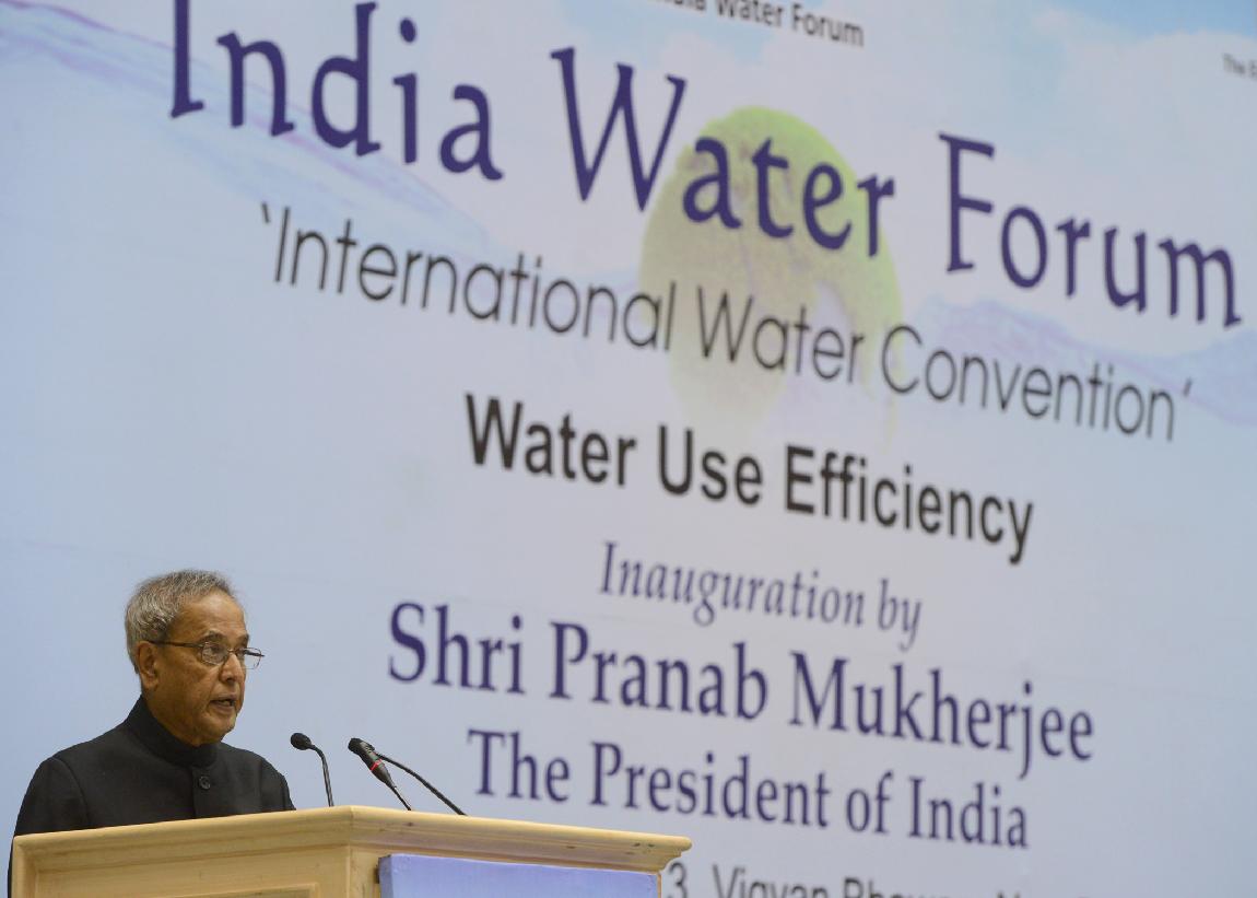 | Caption: | The President of India, Shri Pranab Mukherjee inaugurating the International Water Convention : India Water Forum organized by the Energy and Resources Institute (TERI) at Vigyan Bhavan in New Delhi on Oct 28, 2013 |