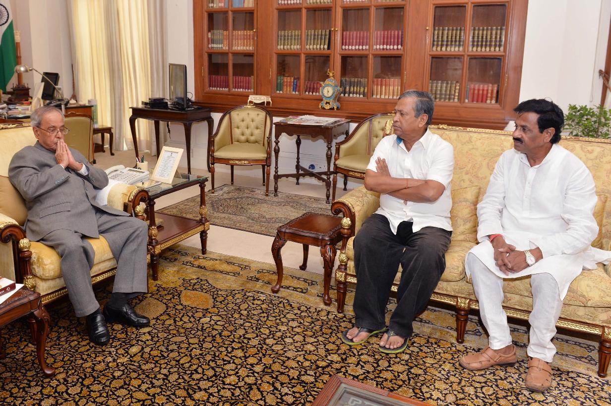 | Caption: | The President of India, Shri Pranab Mukherjee meeting with Shri Paresh Paul, MLA and Shri Sanjay Bakshi, Ex-MLA from Kolkata, at Rashtrapati Bhavan, in New Delhi on August 25, 2015. |