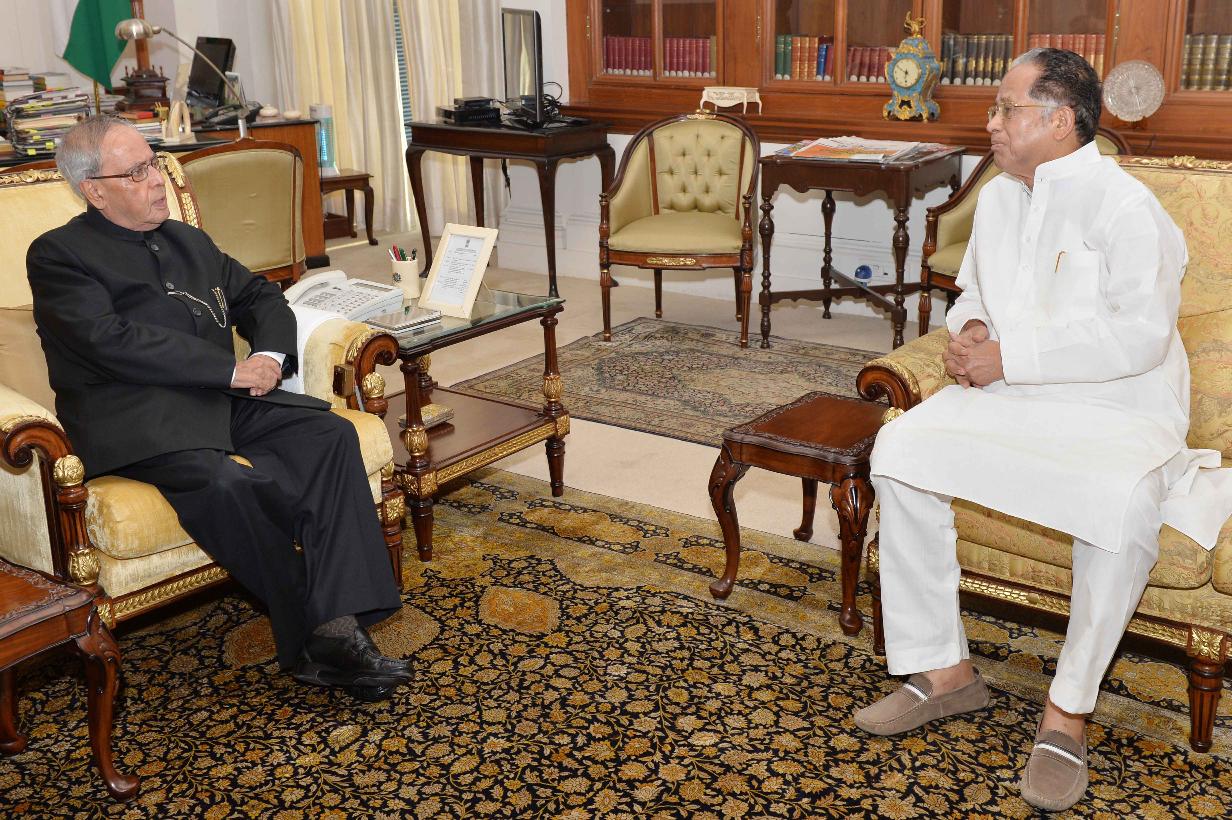 | Caption: | The President of India, Shri Pranab Mukherjee meeting with the Chief Minister of Assam, Shri Tarun Gogoi, at Rashtrapati Bhavan, in New Delhi on August 26, 2015. |