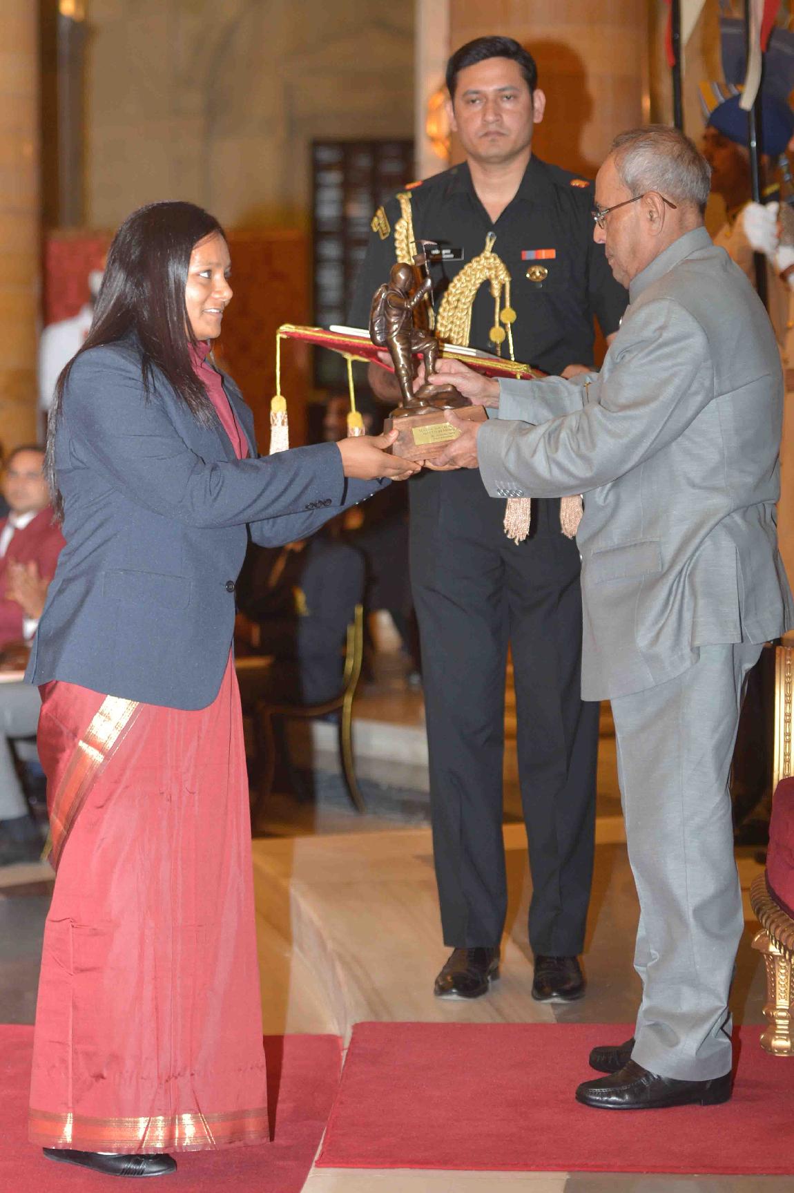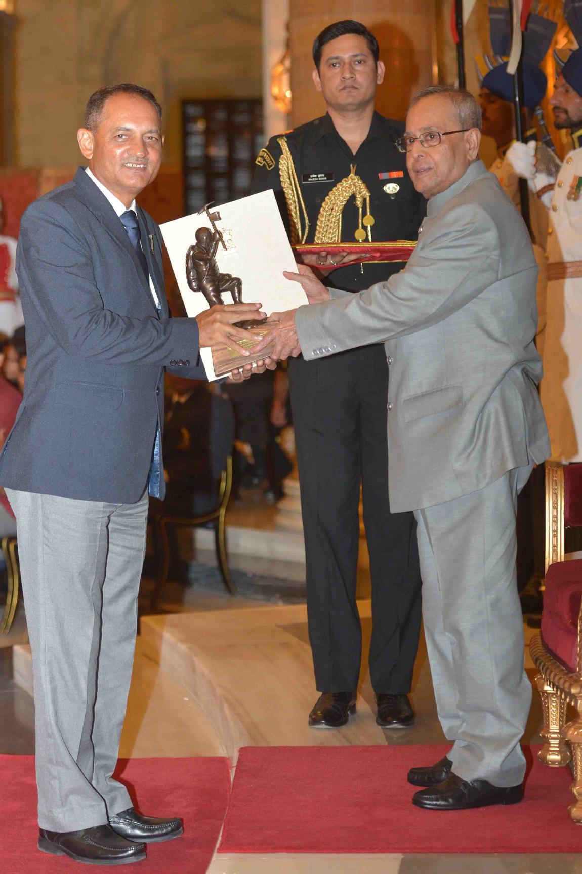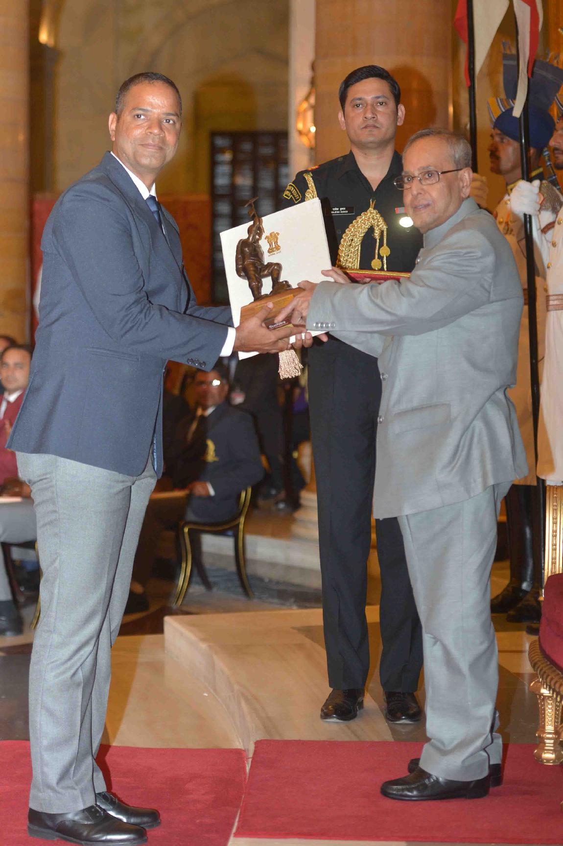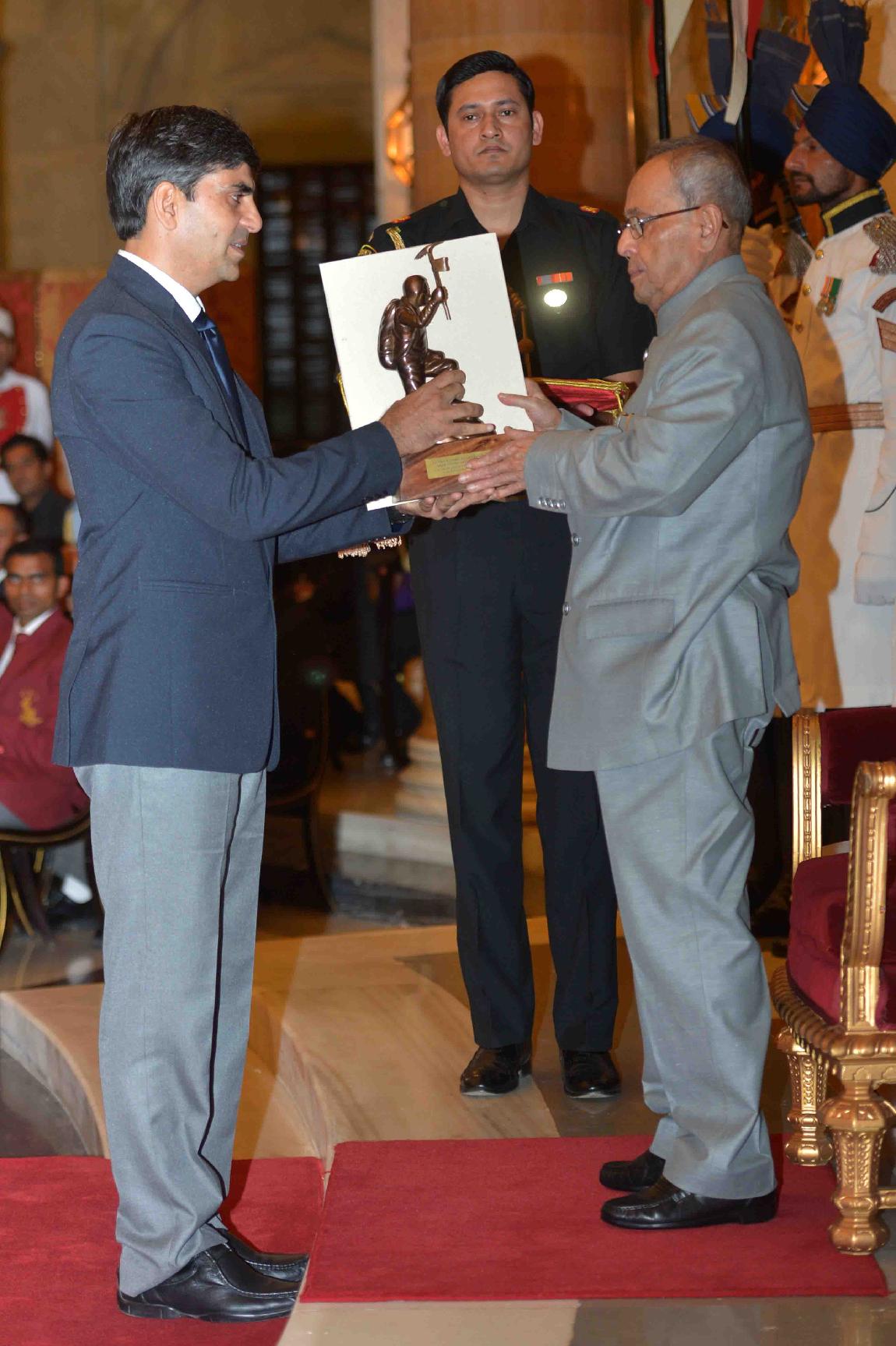 | Caption: | The President of India, Shri Pranab Mukherjee presenting Tenzing Norgay National Adventure Awards, 2014, at the Sports and Adventure Award function, at Rashtrapati Bhavan, in New Delhi on August 29, 2015. |