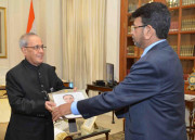 | Caption: | The President of India, Shri Pranab Mukherjee meeting with Shri Nagendra Kumar Saxena, High Commissioner-designate of India to Papua New Guinea, at Rashtrapati Bhavan, in New Delhi on September 07, 2015. |