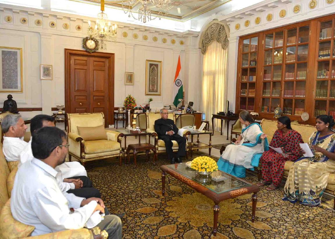 | Caption: | The President of India, Shri Pranab Mukherjee meeting with Smt. Brinda Karat, Member, Polit Bureau, CPI (M) alongwith a delegation from Kandhamal district of Odisha, at Rashtrapati Bhavan, in New Delhi on September 07, 2015. |