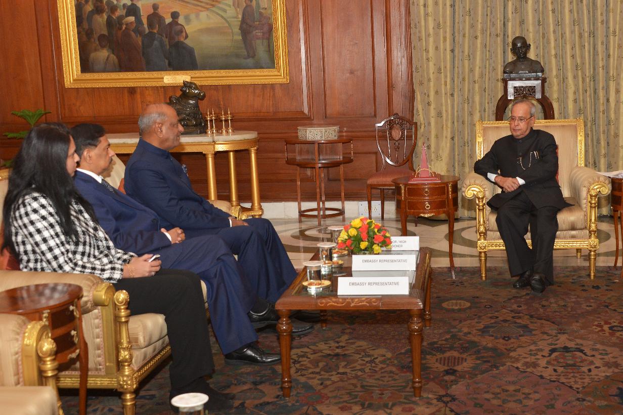 | Caption: | The High Commissioner-designate of the Republic of Mauritius, HE Mr. Jagdishwar Goburdhun presenting his Credentials to the President of India, Shri Pranab Mukherjee, at Rashtrapati Bhavan, in New Delhi on September 02, 2015. |